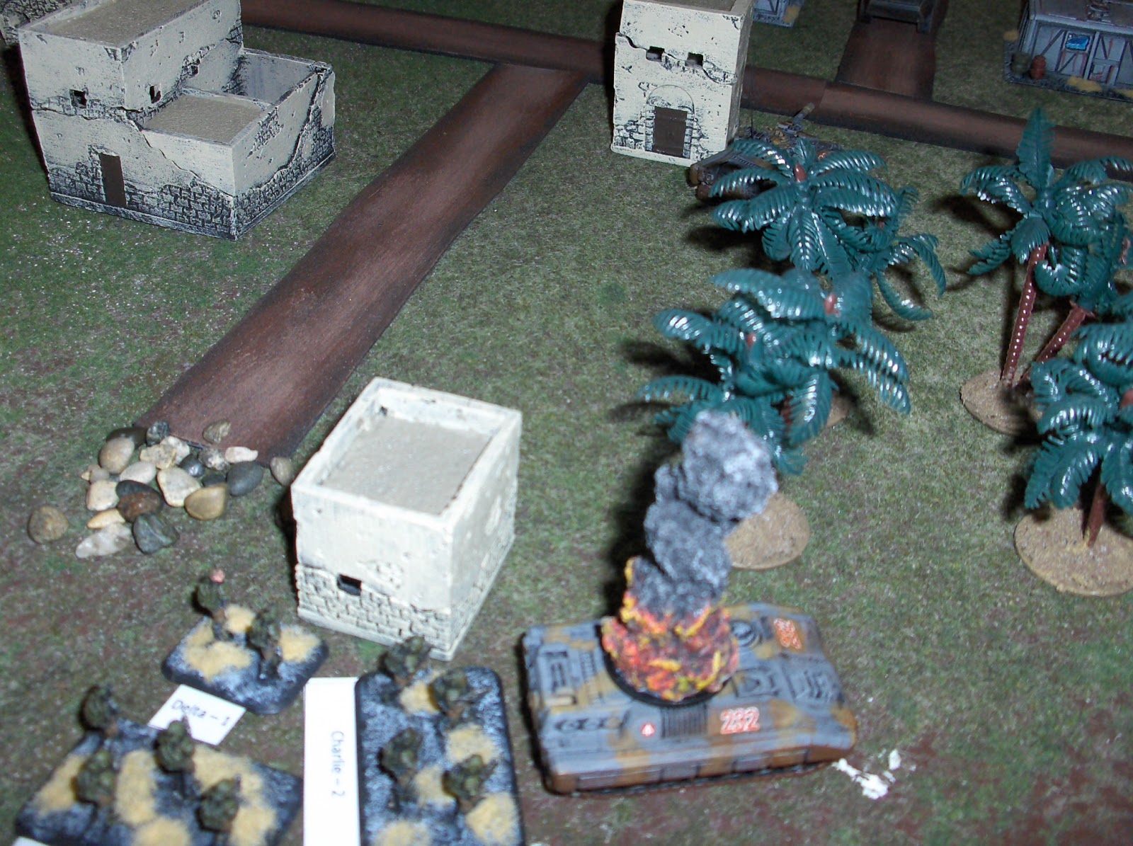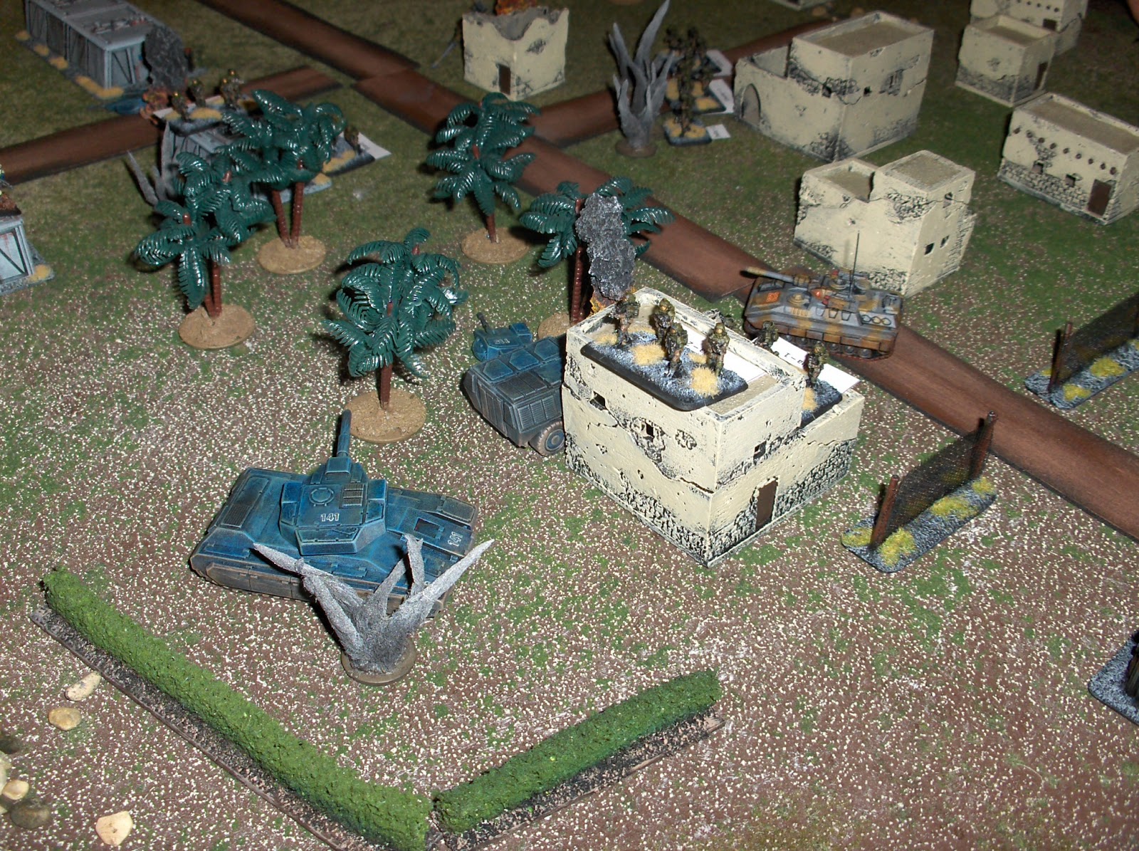 In an exchange of fire with the CB tank, the latter is immobilized but on the next turn the Merka is destroyed as it tries to withdraw out of LOS.