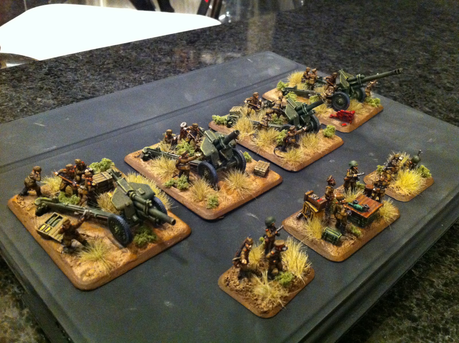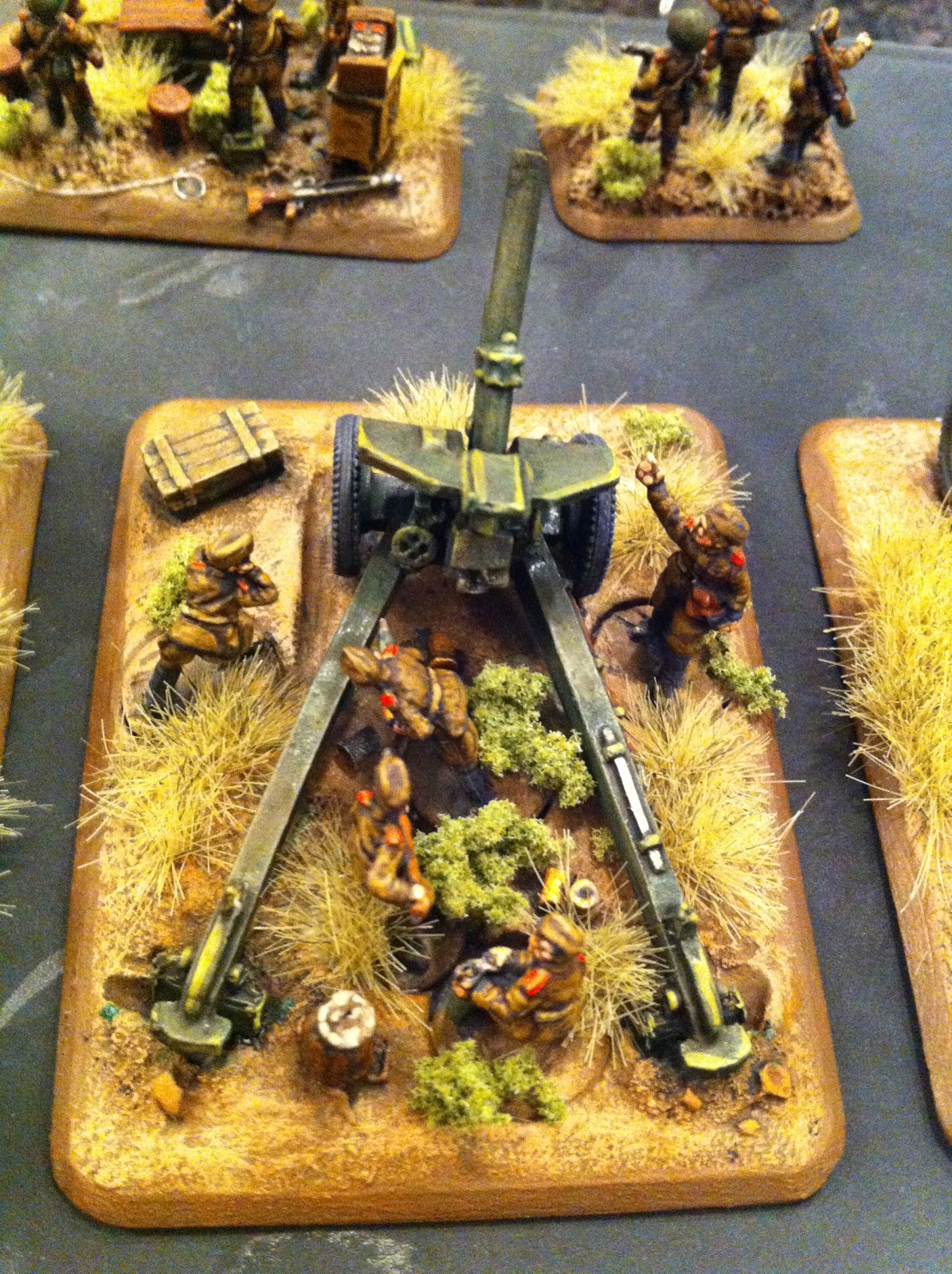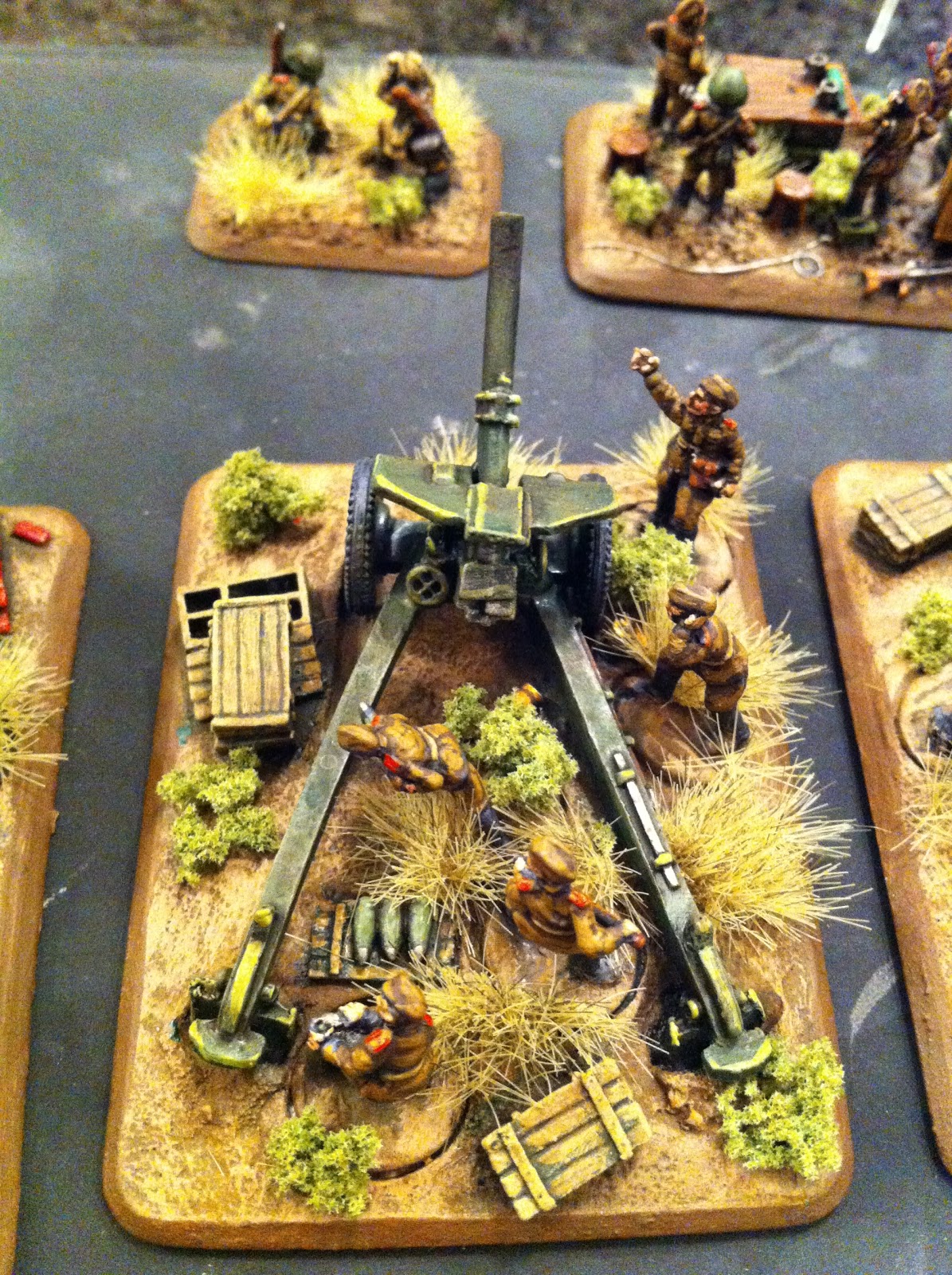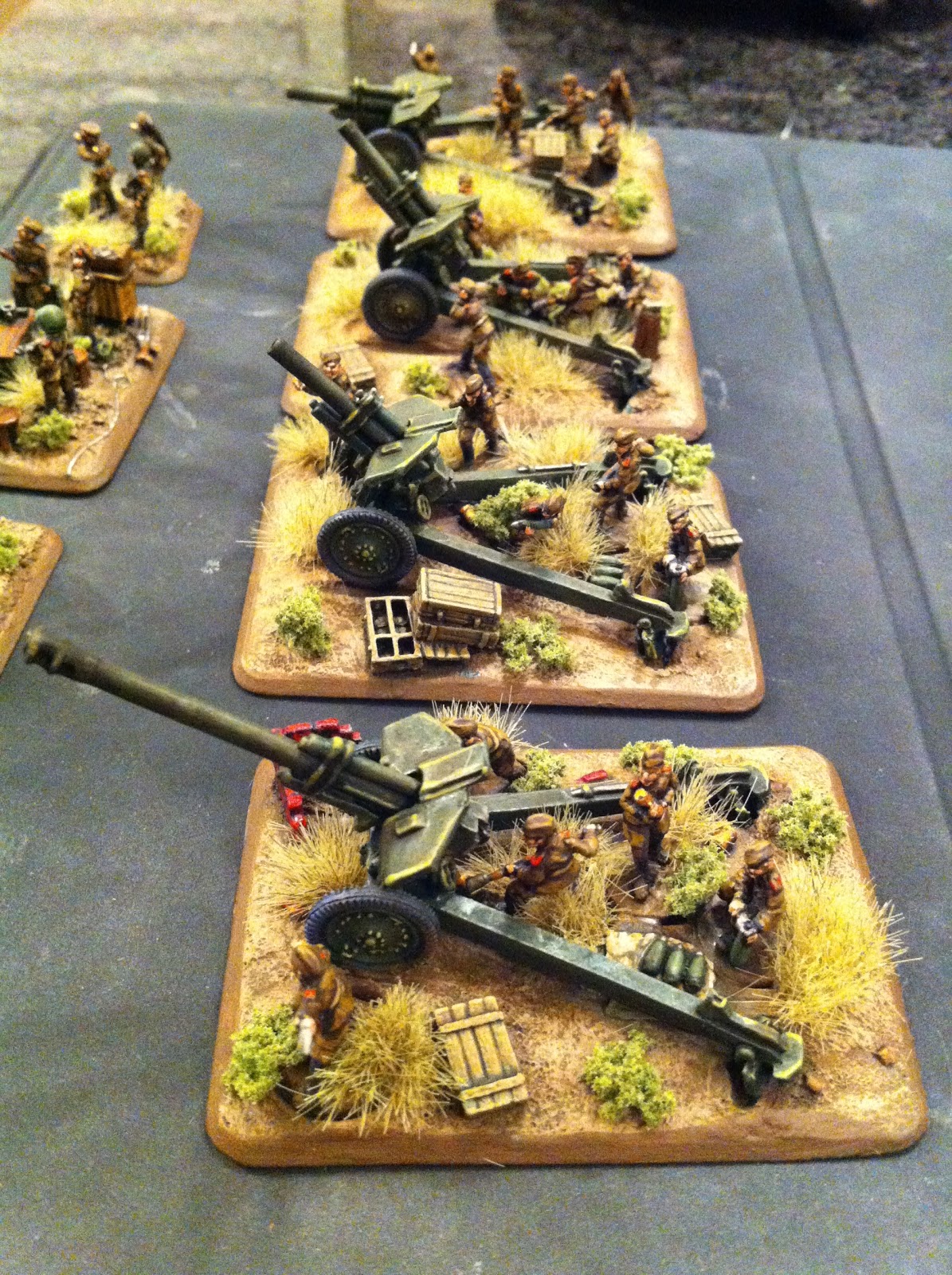 previously - they had been painted earlier). The detail on these custom bases is really, really impressive - ammo boxes, rubble, spent casings, fresh shells - it is all there. It adds a lot of character. So whatever I think of FoW as a rules set, I have no complaints on the quality from Battlefront. These models were fun to build and paint.