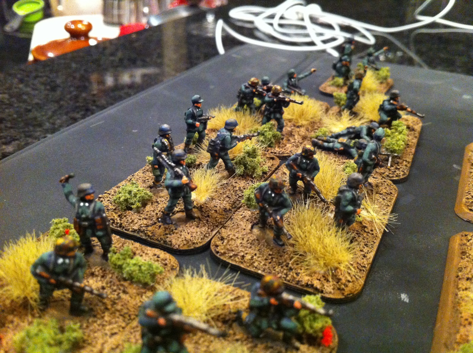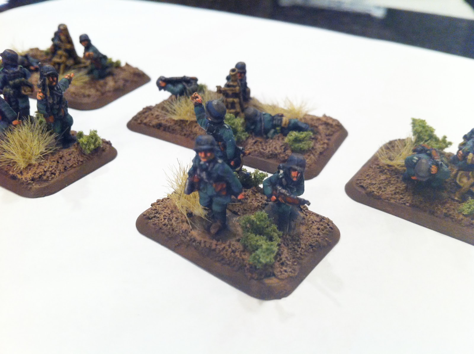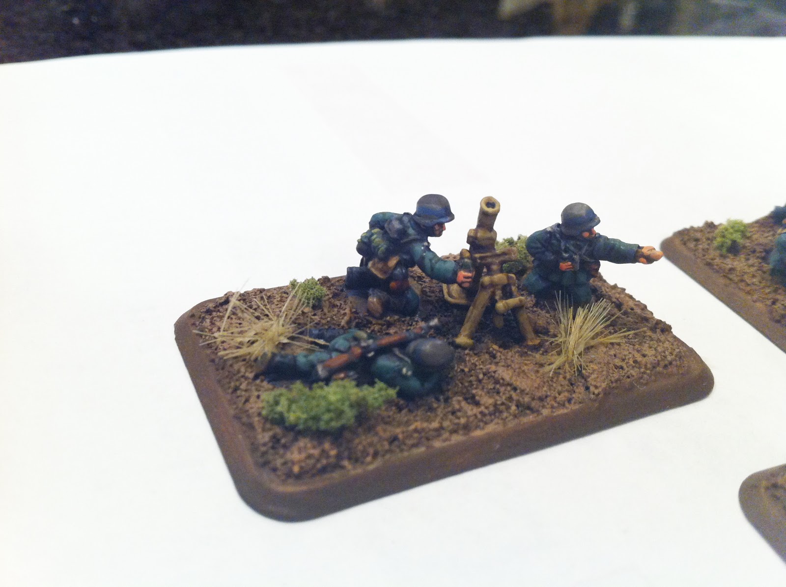 This post includes two platoons of 15mm WW2 German infantry and a platoon of mortars. The infantry include both Peter Pig and Plastic Soldier Company figures, while the mortars are from Battlefront.