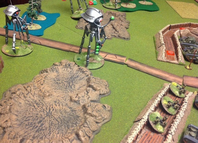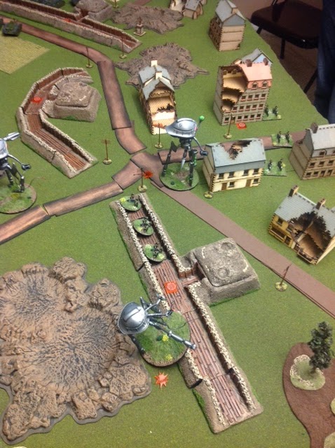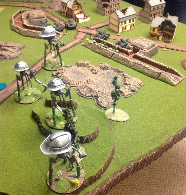 The Martians had to setup along the table edge, while the human forces were allowed to deploy completely hidden.