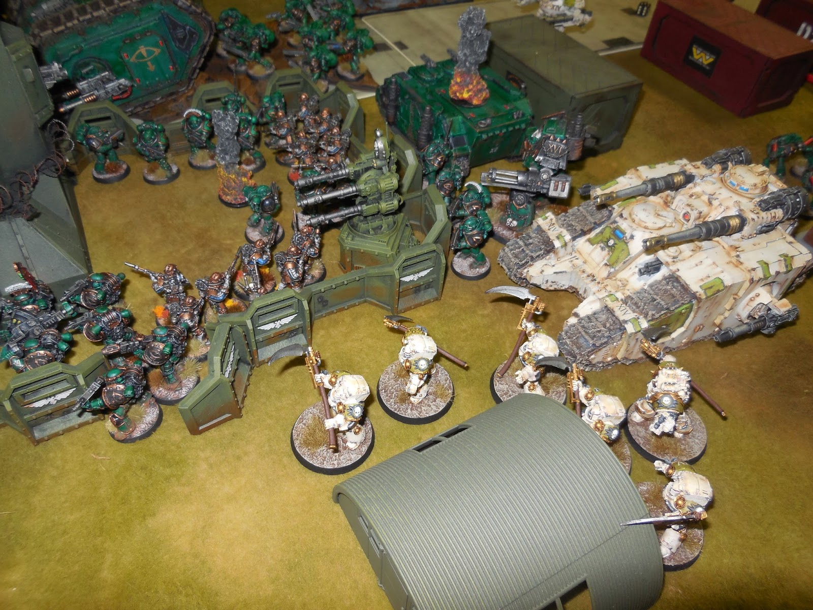 The SPARTAN!!! and a Rhino rolled on as well. Just out of shot, the Praetor and command squad were about to assault the other Death Guard tactical squad, and eventually eliminate them.