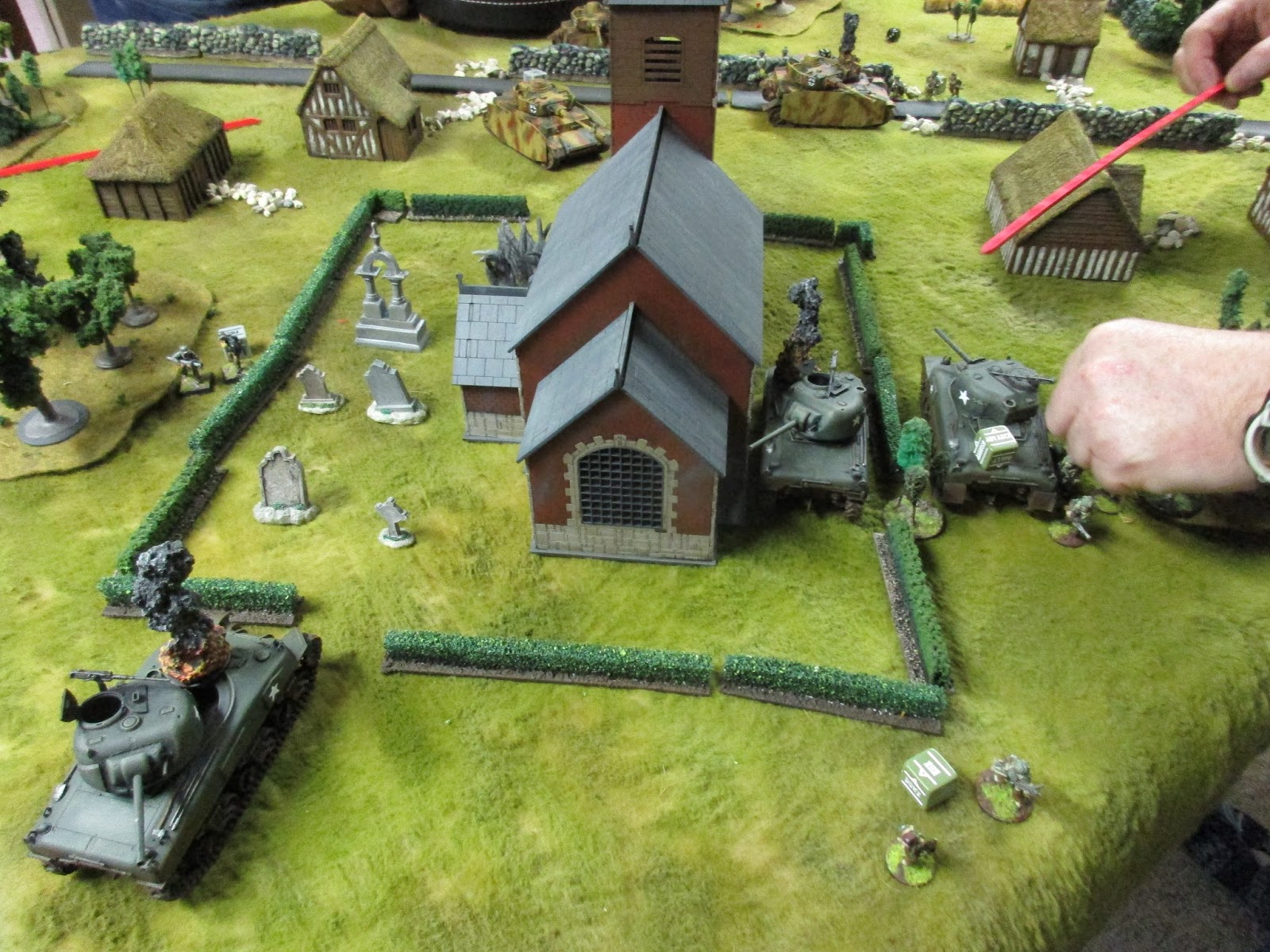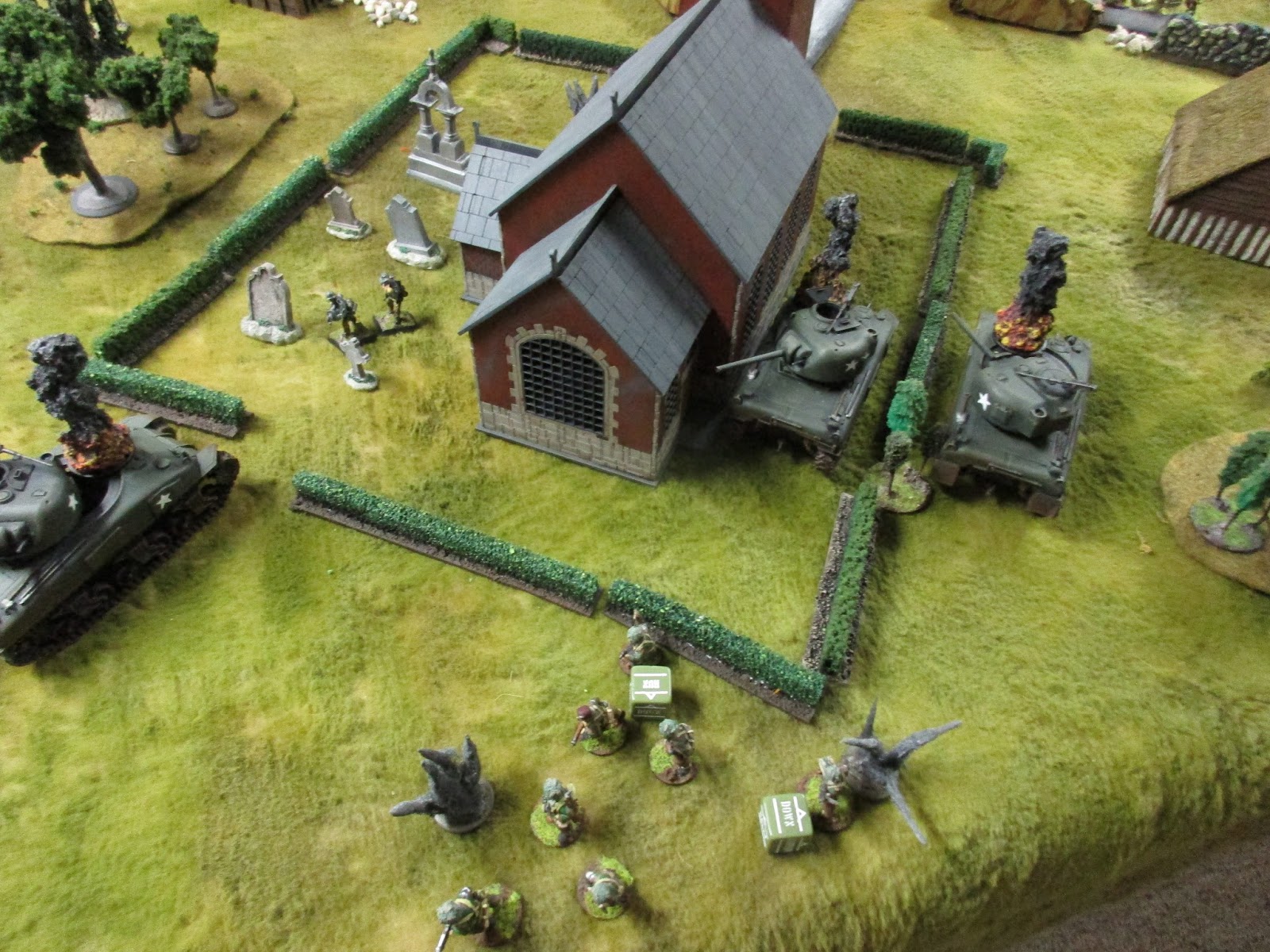 Men of the match for the Germans were maybe the squad in the church, who weathered fire from tanks, small arms, and a flamethrower(!), while laying down MG and rifle fire in all directions.