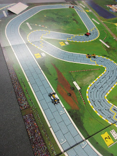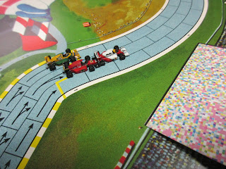 I'm hoping we can complete a seven-race season over the year. I also have boards for Monaco, France, Italy (Monza!), Portugal, Japan and Australia, which would make a decent season. I'm also busying myself painting some of the other runners - so far I've also done the Lotus, Footwork, and Tyrrell cars, so we can accommodate more competitors for sure.