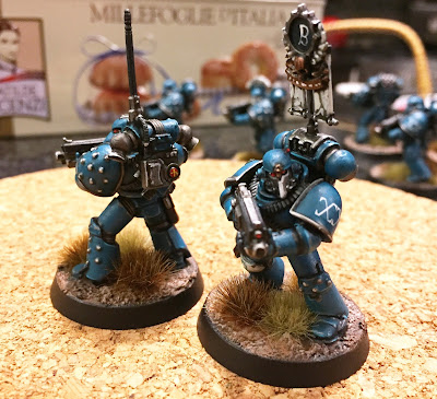 So a total of 12 models in 28mm, good for another 60 points or so. The completion of this unit provides the absolute bare bones of a force for the tabletop - two troop choices (tactical squads) and an HQ (the chaplain). This is next to nothing under the current iteration of the 30k/40k rules, but would be plenty for a game of Rogue Trader, or even just enough to wreck things for someone as some "allies" - and with friends like the Alpha Legion, who needs enemies?