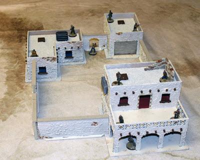 I had so many plans for this theme week and kept delaying them and eventually ran out of time. So I just grabbed some of my Middle Eastern MDF buildings, coated them with stucco and painted them up. Nothing fancy, but I needed them done anyway. Over all though, pretty sad from a guy who loves making terrain! In my defense though I had just forced my way through several Napoleonic regiments!