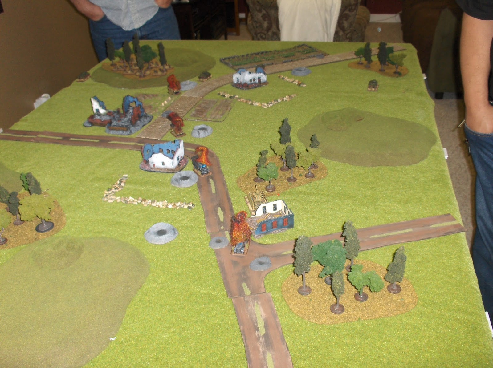 Flames of War still has a few "gamey" aspects that I dislike, but overall it was a lot of fun.  It's a good excuse to move a bunch of toy soldiers around and blow them up!  I hope we can play this again sometime soon.  Thanks to Dallas for hosting, and to everyone who came out to play, watch and visit!