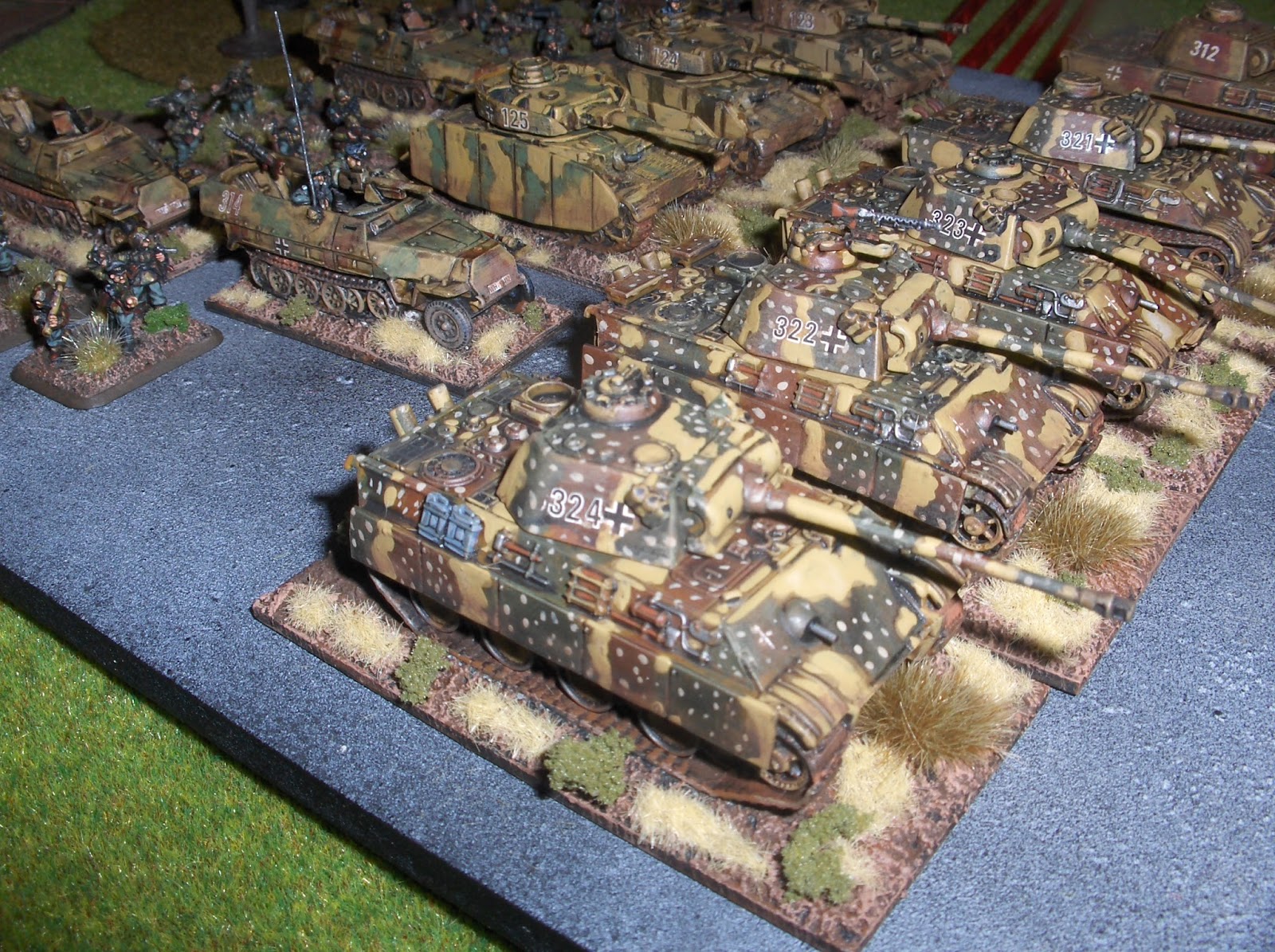 The Germans had a platoon of Mark IV-Hs, a platoon of Panthers, and a platoon of German Panzer Grenadiers.  They were rated "confident veteran.