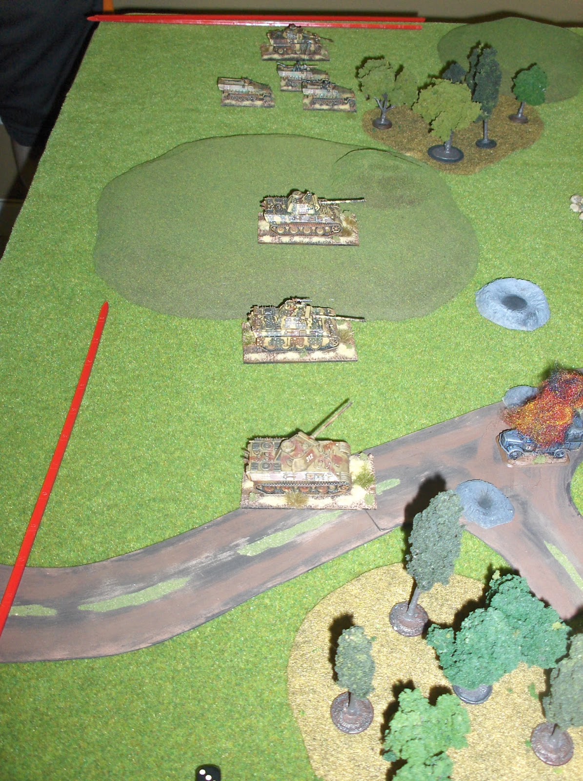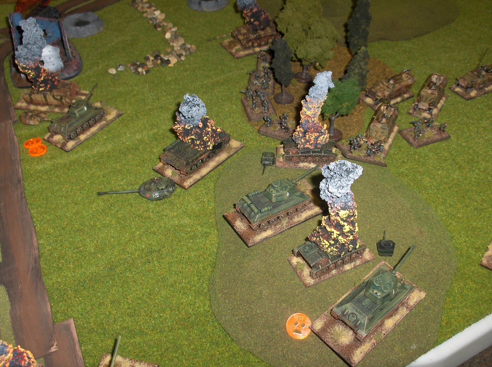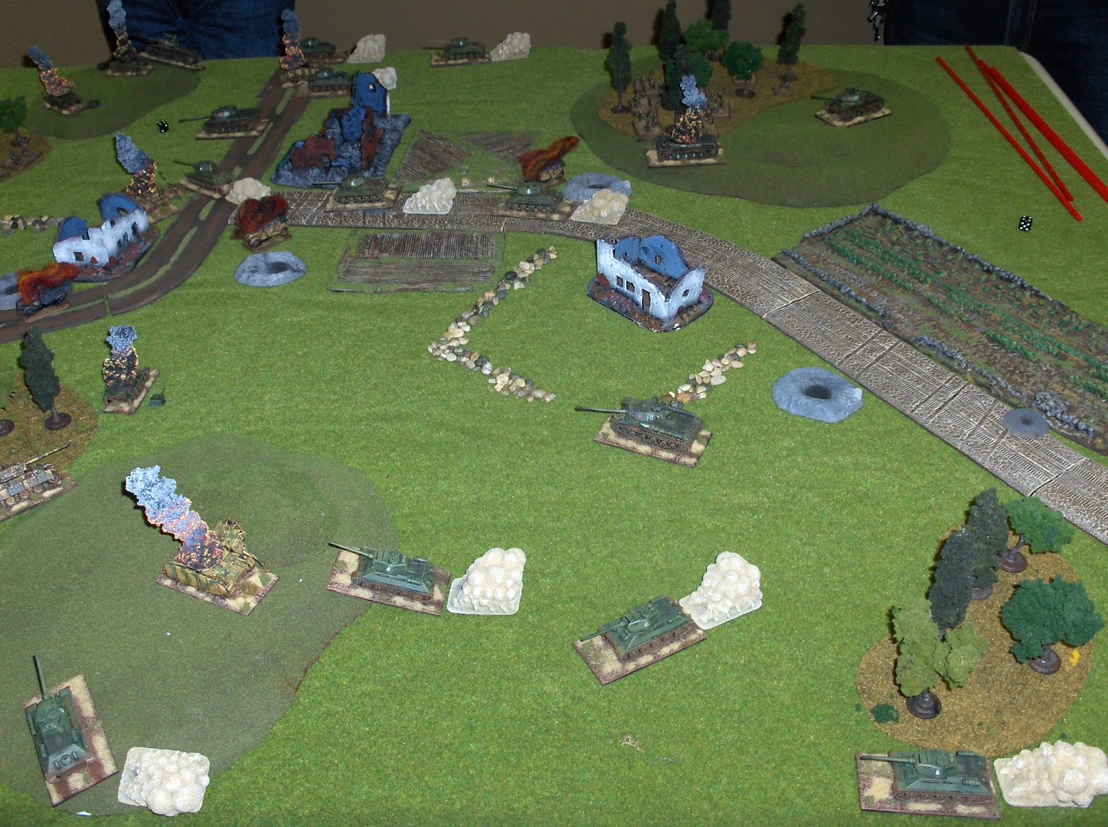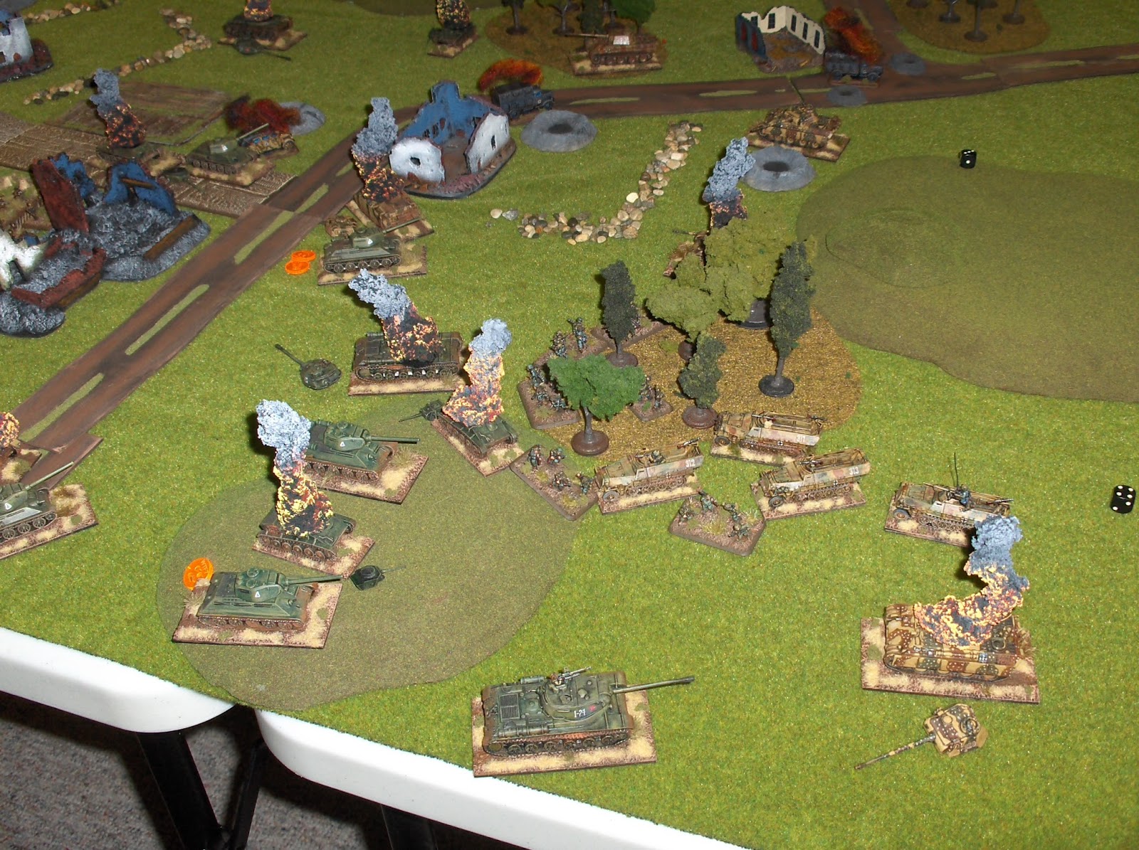 Another factor affecting the outcome was some bad luck for the German dice - the Panthers were lethal tanks, but the German players rolled a lot of "1"s and "2"s at key points, missing opportunities to knock out Soviet tanks with their potent 75mm guns.