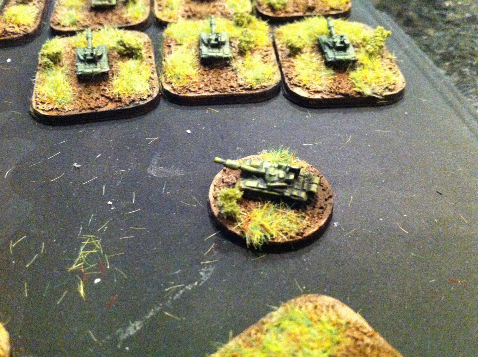 TMP door-knobs aside, 3mm will not be for everyone. For me, it is a lot of fun to work on these little tanks and troops.  It is a challenge to find the right colour shades to make the figures more visible, to shape the groundwork a little bit, etc. You can get a pile of them for a small sum, the range is unbelievably complete, and I even love that they mildly evoke counters - after all, I was a huge fan Avalon Hill games like "France 1940".  I'm also a big Cold War tank geek, so I can "see" the shape of the vehicles right away.  I'm not sure that will hold for the more casual participant.  These will probably need some labels to help with identification.