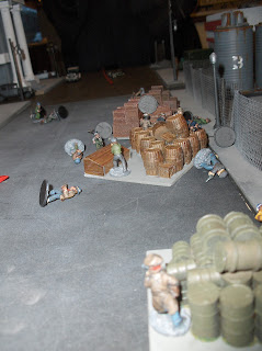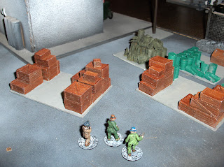 Well, the game ended as expected - the British had made a minor gain on their right flank but the Germans reinforced their supports so the Brits would be in for a fight to hold on. I think when we play this game again I'll start the British a bit farther onto the table - maybe 12" in rather than the 3" or so in this game. It just gives a bit less ground for them to cover. Of course, starting in closer can be a slight disadvantage for them too, as their MGs have fewer turns with clear fields of fire, so that's a nice tradeoff. I'd tweak the rules slightly as well, to allow a "run" move of d6" in the Close Assault phase for troops who didn't shoot.