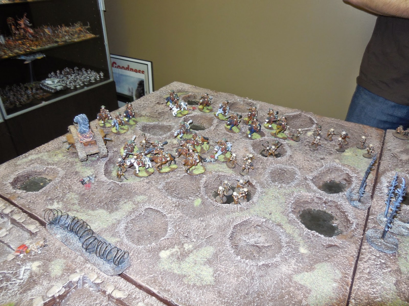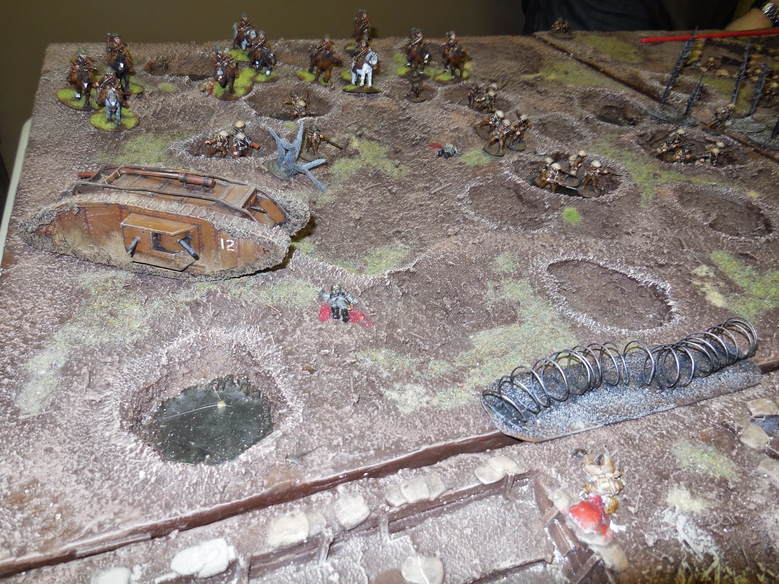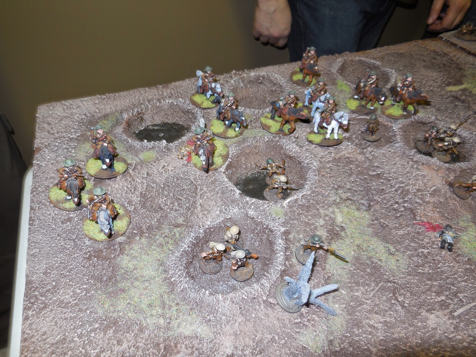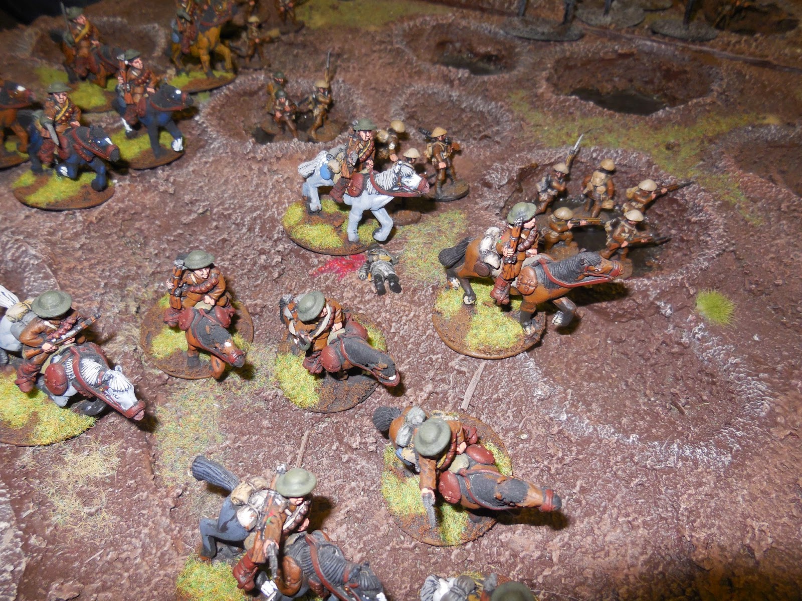 The leading cavalry troop just made it to the edge of the front line trenches. Some of their infantry comrades occupied the trench line just in front of them as the game was ending.