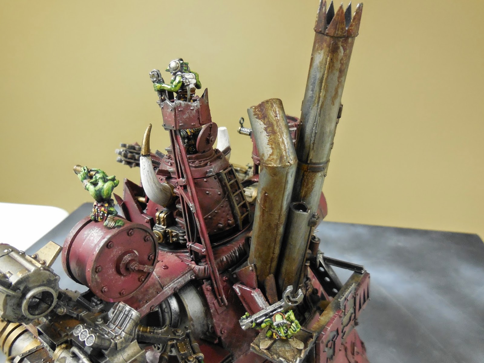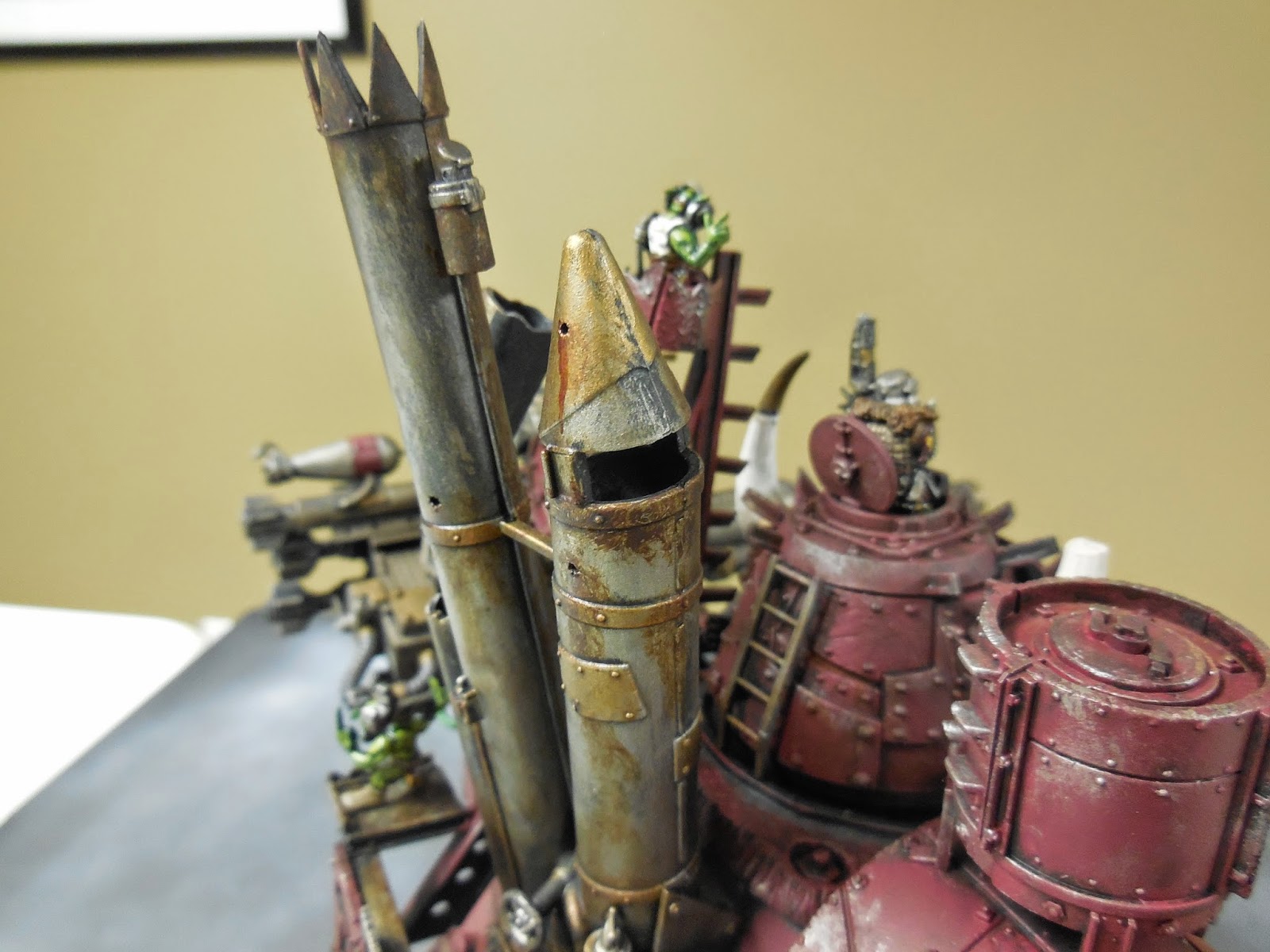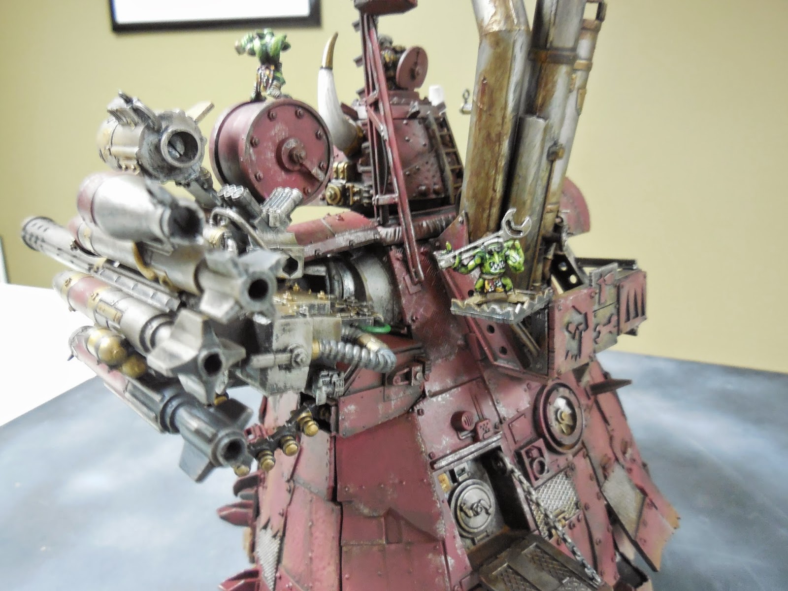 Although I have more crew-orks to paint if I want to, I'm considering this model to be done for now. It was a pretty cool build but honestly I'm happy to see the back of it and get it on the table. The sheer amount of red paint it took was staggering - basecoating took most of the time in painting. Once it got to the weathering stage it was more enjoyable, but I think the sheer size and scale of the thing made it a little daunting from the fun perspective.