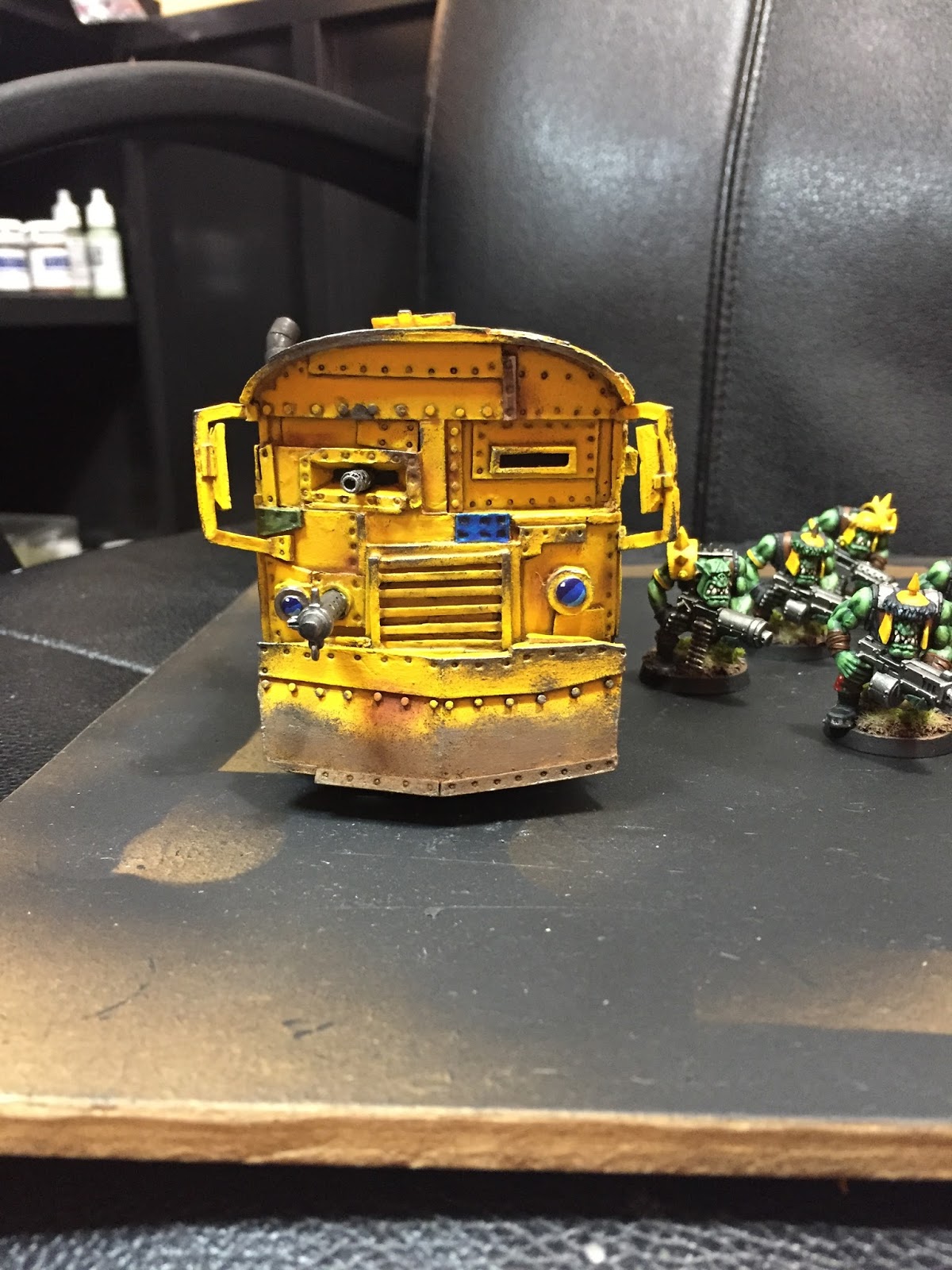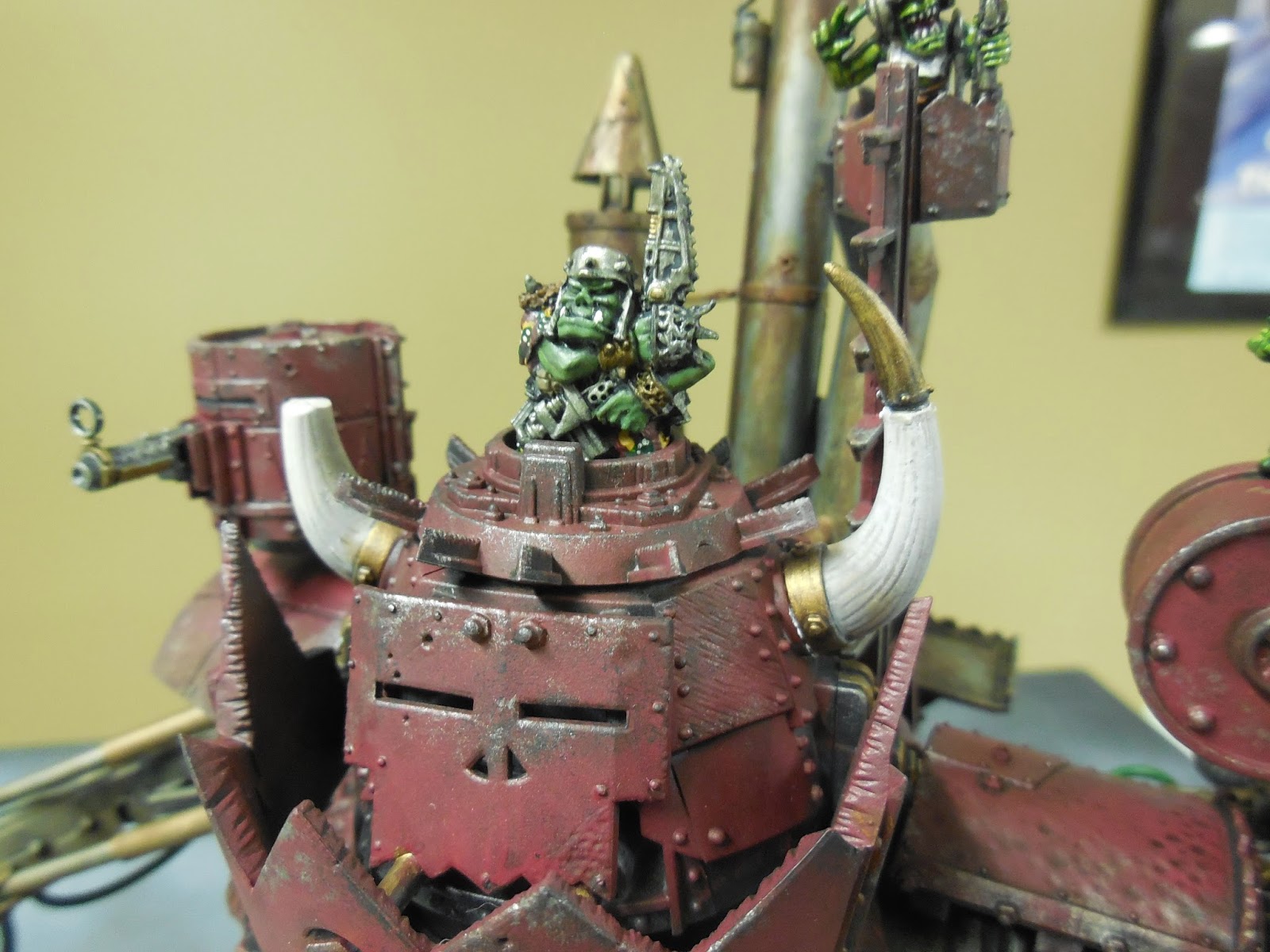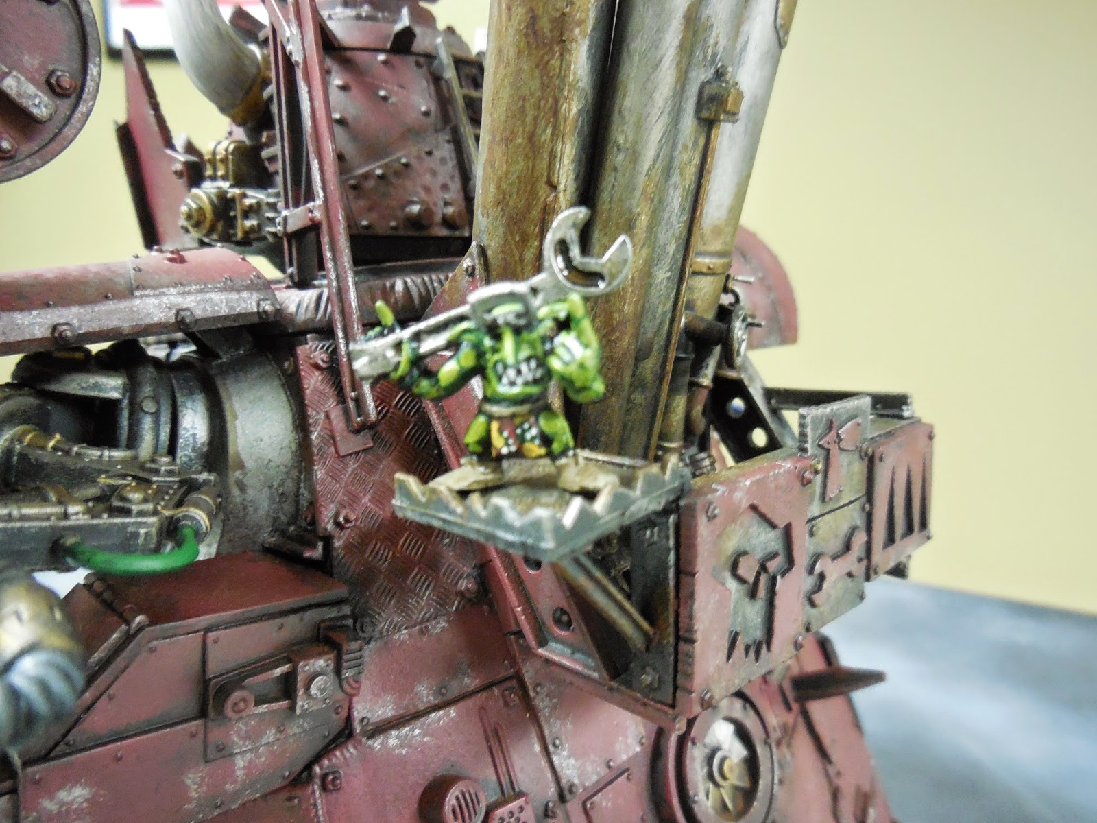 Although I have more crew-orks to paint if I want to, I'm considering this model to be done for now. It was a pretty cool build but honestly I'm happy to see the back of it and get it on the table. The sheer amount of red paint it took was staggering - basecoating took most of the time in painting. Once it got to the weathering stage it was more enjoyable, but I think the sheer size and scale of the thing made it a little daunting from the fun perspective.