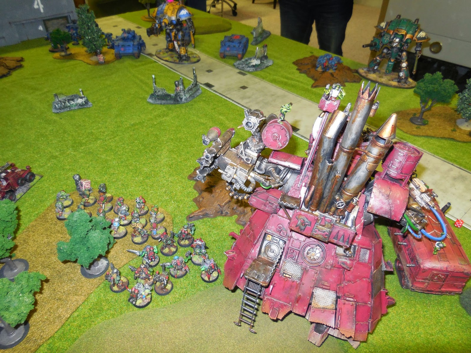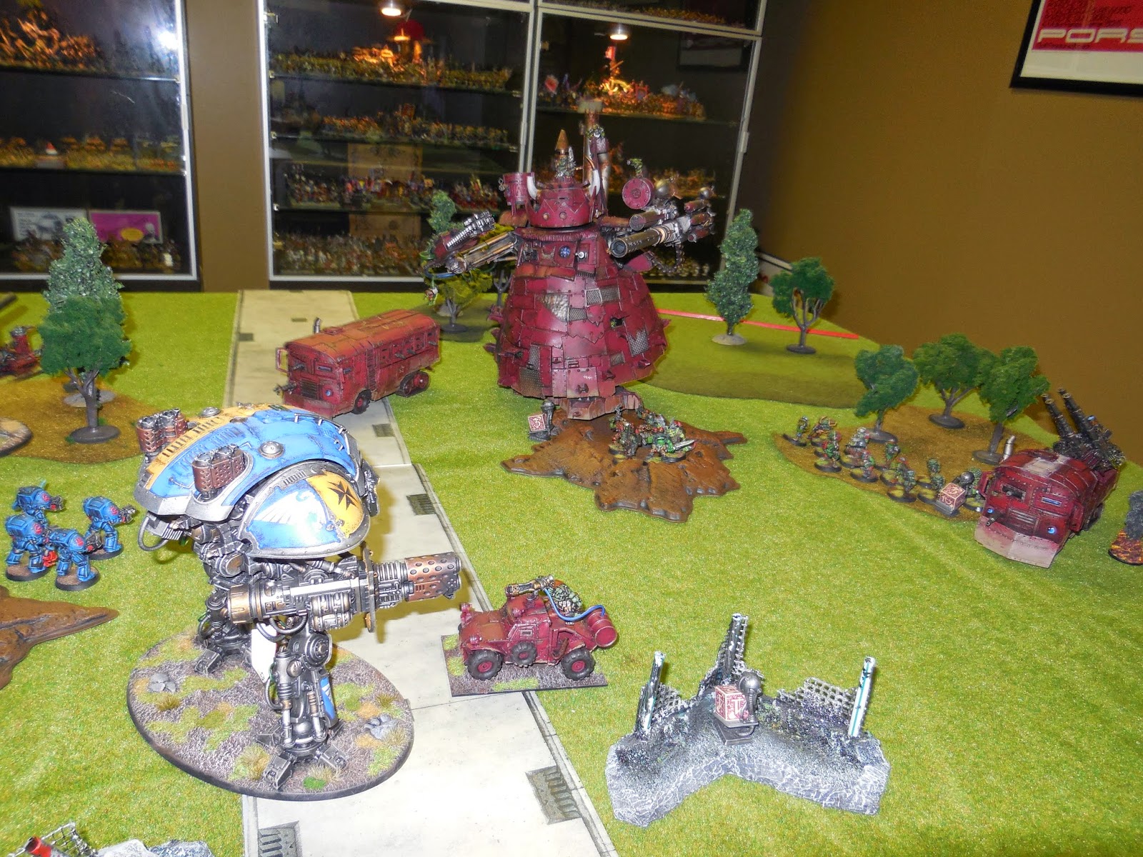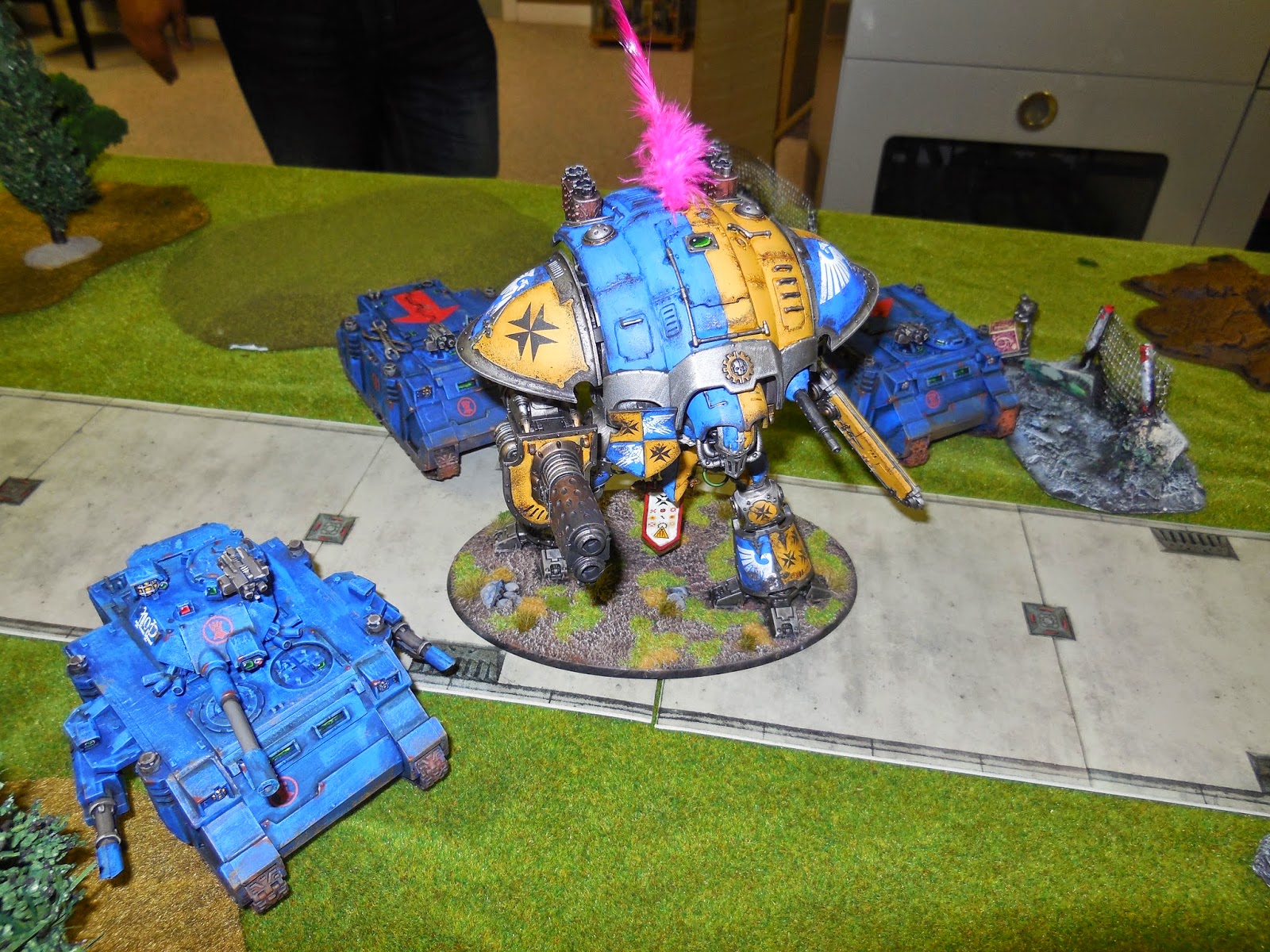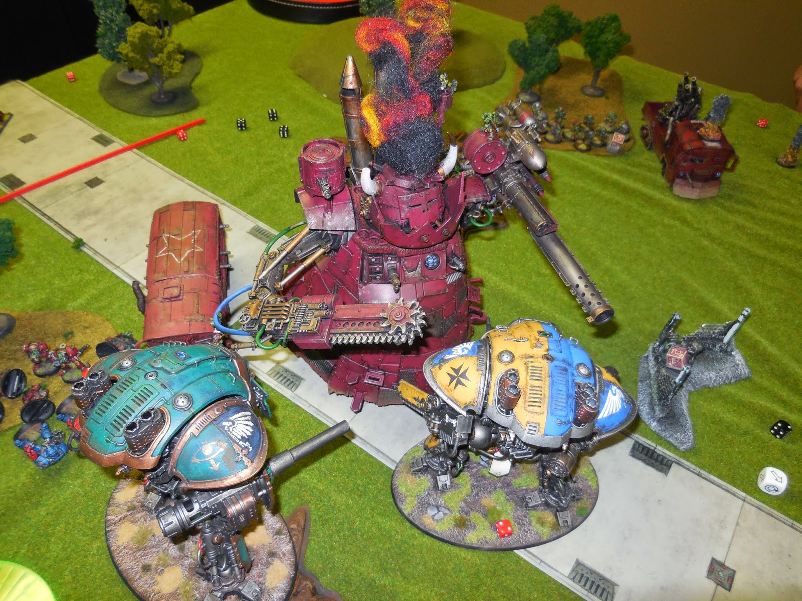 Last Thursday we decided to roll out some new models that hadn't yet been battle-tested - the Ork Stompa I finished last week, and the Imperial Knights that Conscript Greg and I painted last summer.