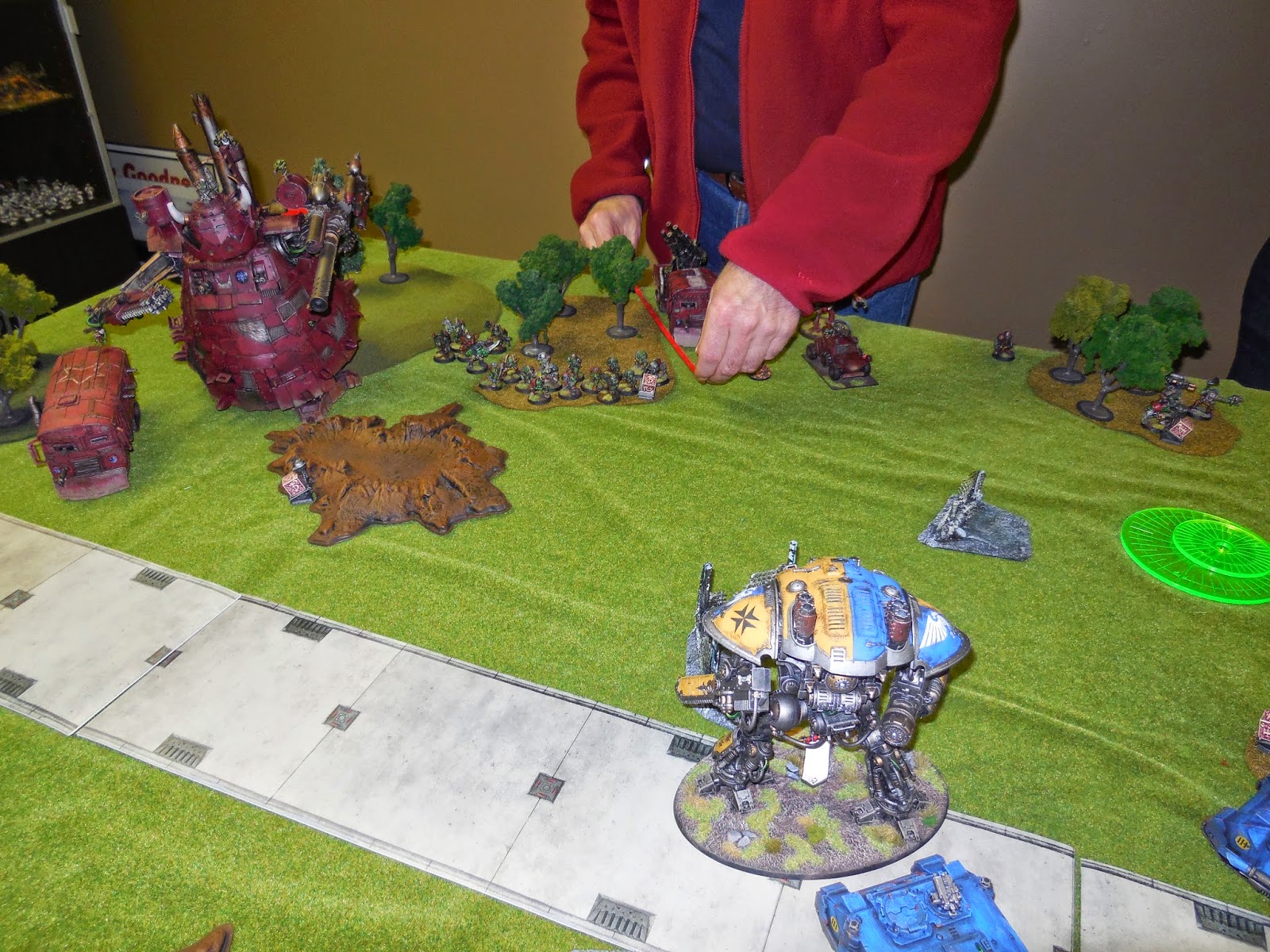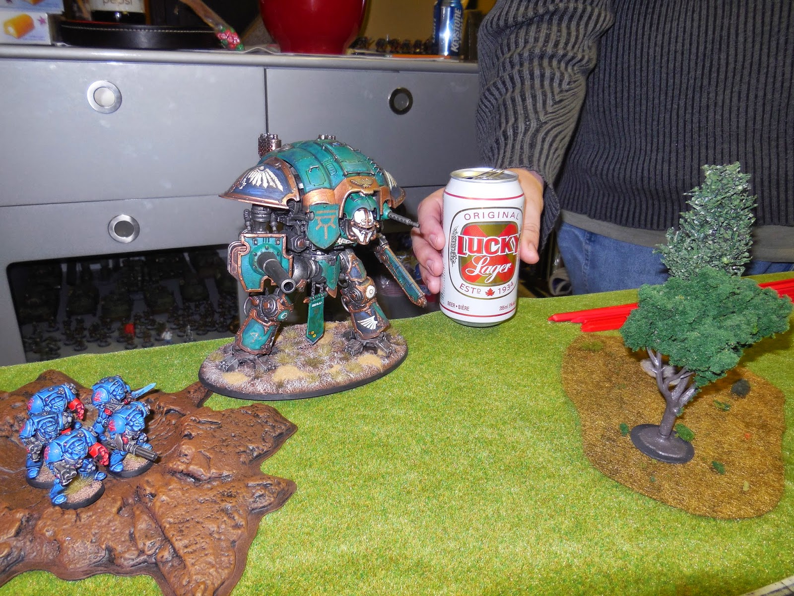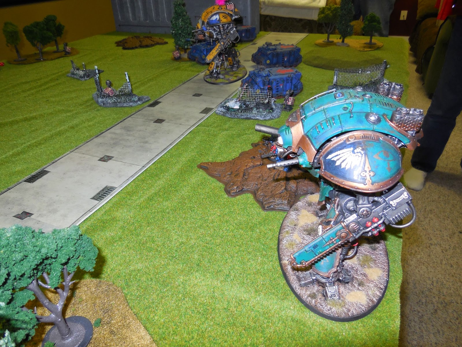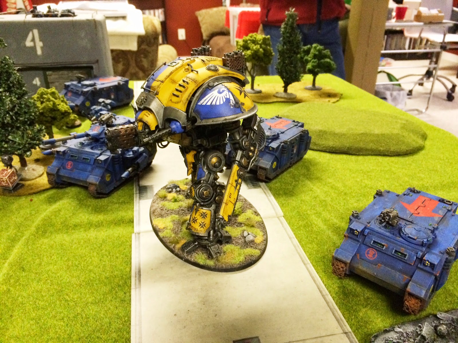 Last Thursday we decided to roll out some new models that hadn't yet been battle-tested - the Ork Stompa I finished last week, and the Imperial Knights that Conscript Greg and I painted last summer.