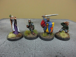 The Over-the-Ponders: Livingstone the Mage, Blume the Elven Ranger, Sir Jackson, Ansell the Thief. Blume is a Grenadier figure from the AD&D set of the early '80s; Ansell is also Grenadier c. 1979