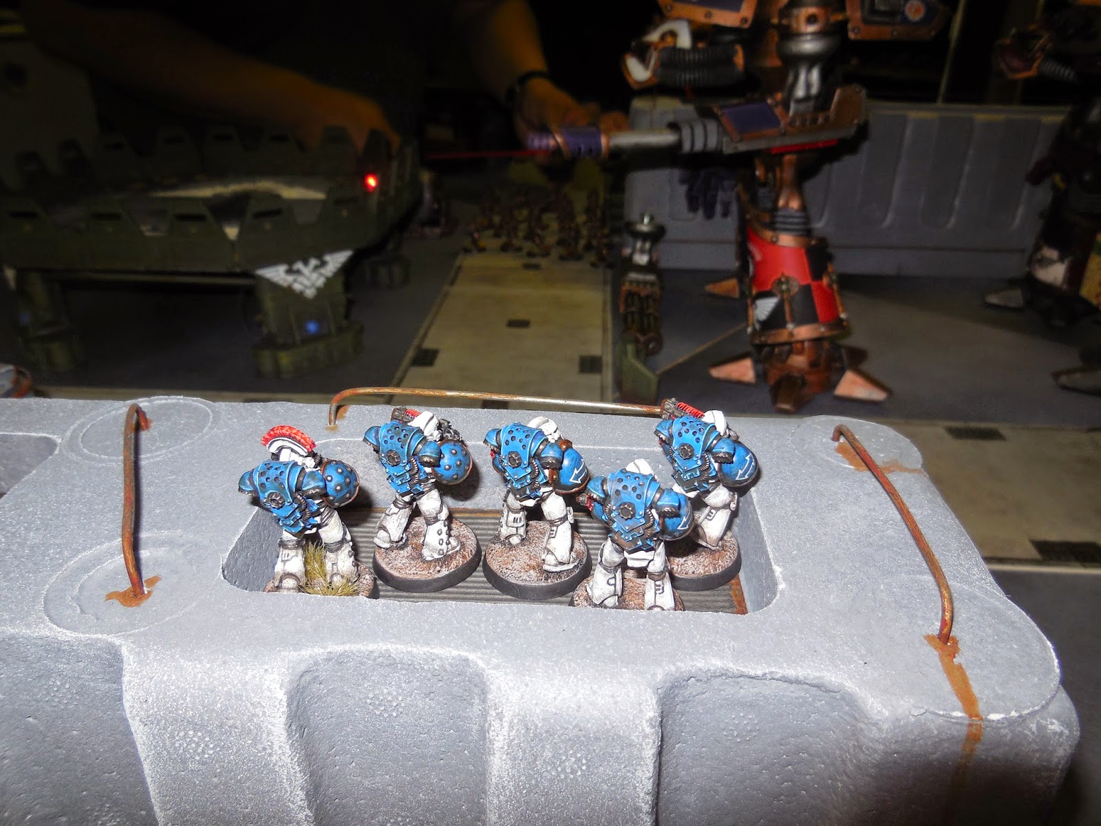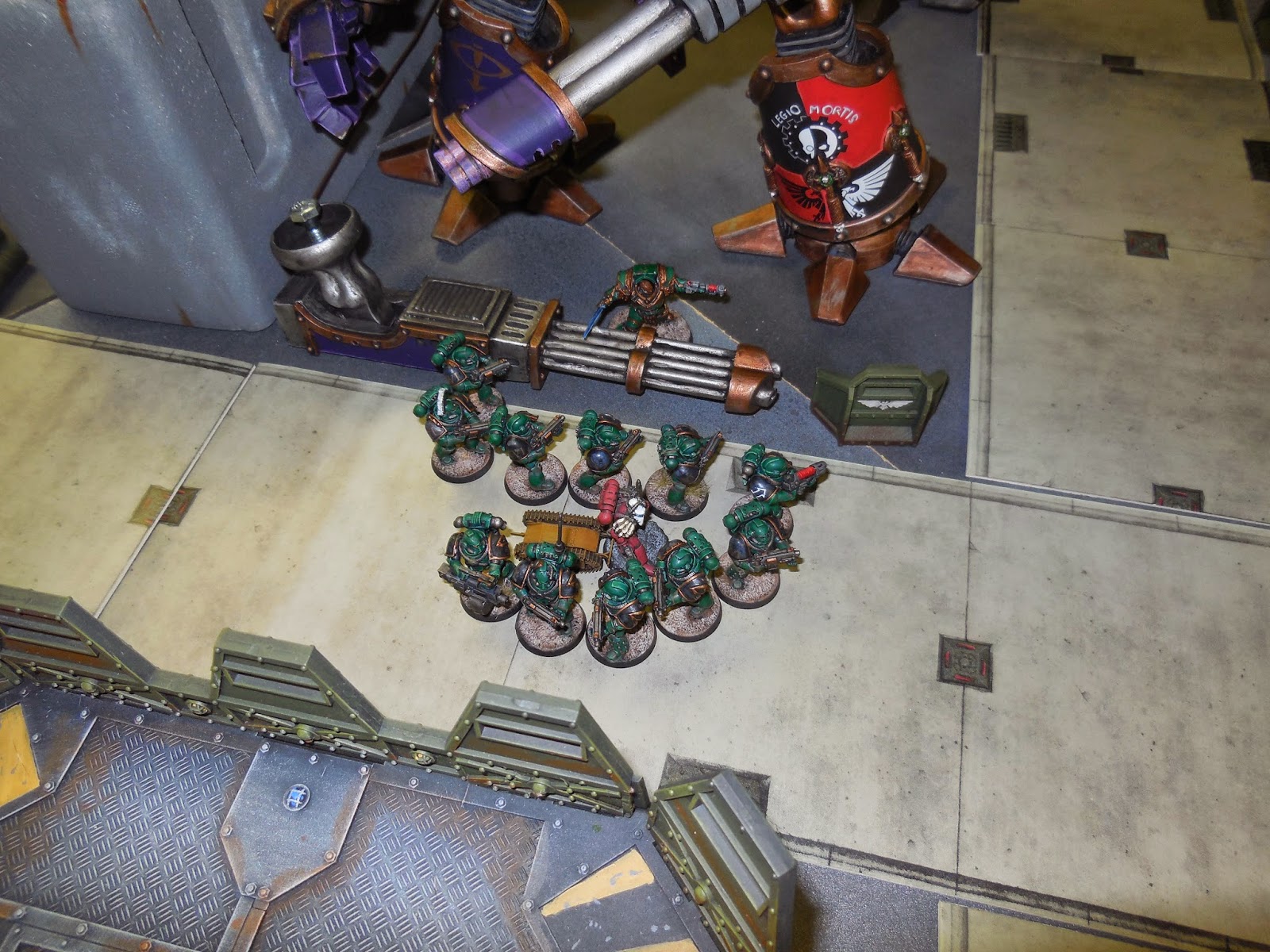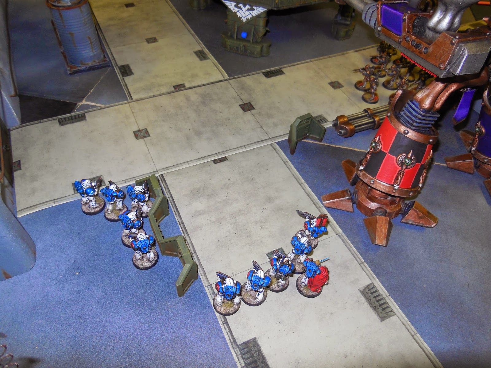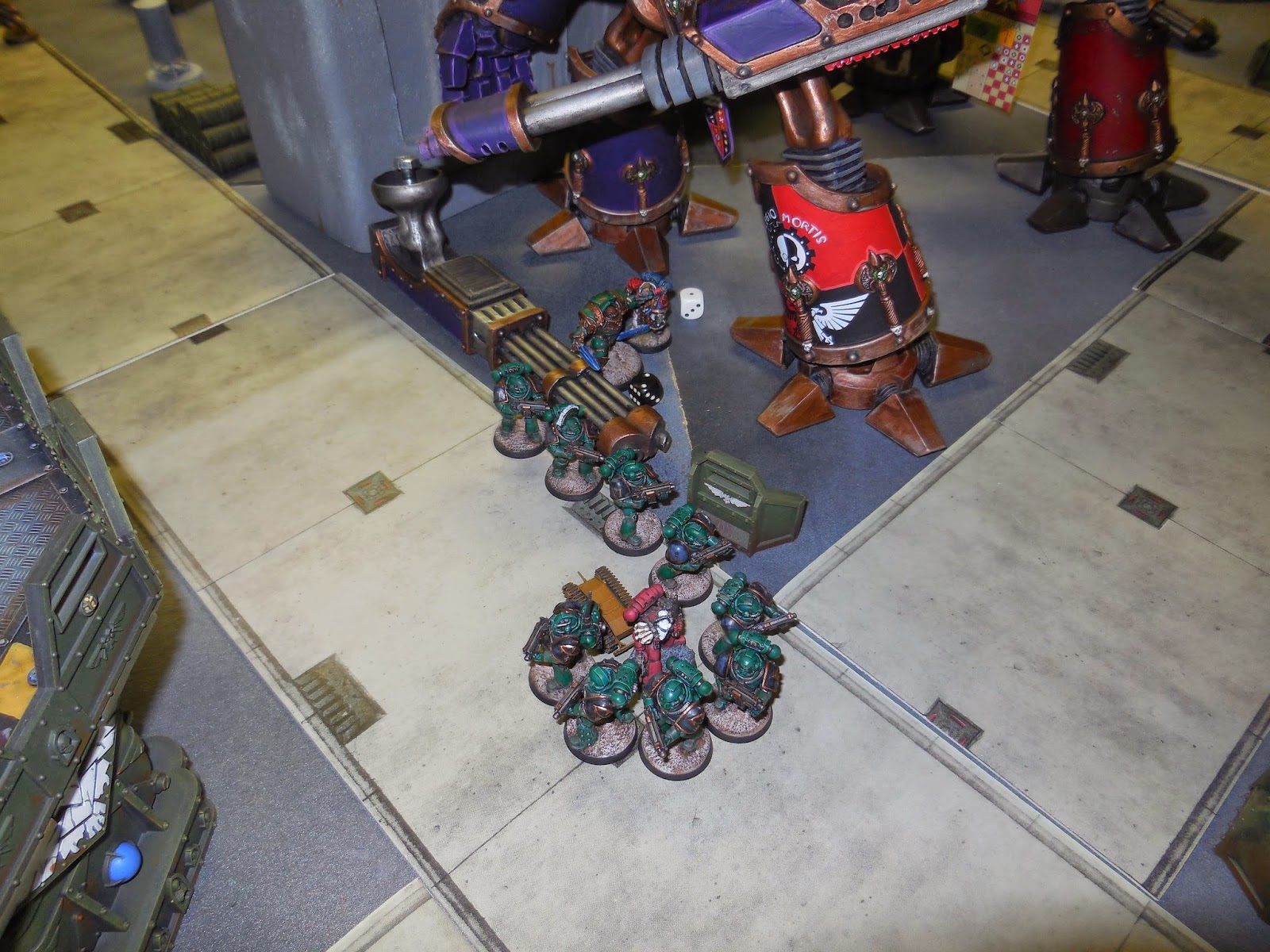 A great opportunity to use some massive terrain pieces - the styro-crete walls, Imperial Bastion, Aegis Defence Line and Skyshield LED pad were all deployed. Plus of course the Titans!