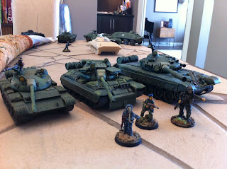 | Troops in front of a T-55 from Force of Arms models - tank is 1/56 scale |