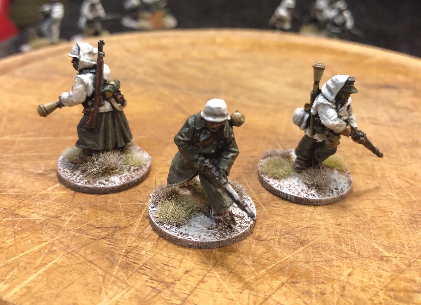 Is it possible to paint even more 28mm WW2 Germans in winter kit? Apparently yes... the brushes are on a roll, so here is a third batch of 28mm WW2 Germans in winter gear, part of my ongoing submissions to Curt's Analogue Hobbies Painting Challenge. These are metal figures from Warlord, and include the contents of a command pack as well as a special giveaway figure(s) they were tossing into various packs during their Christmas promotions.