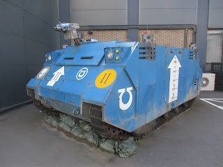 Outside of course is the M113 made up to look like an Ultramarines Rhino... cool...