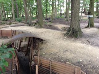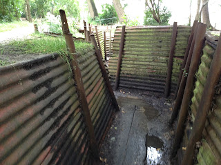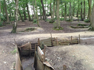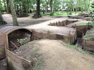 Outside the museum is an area that purports to be preserved period trenches. I say "purports to be" because I've read varying accounts on their strict authenticity. Whatever the case, the trench system here is certainly old, and its appearance is generally consistent with what you see in period battlefield photography.