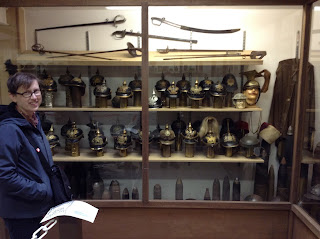Pam is contemplating the massive collection of pickelhauben. As an avid pickelhaube enthusiast, she was happy to see that her favourite state, Mecklenburg-Schwerin, was represented. Just kidding!