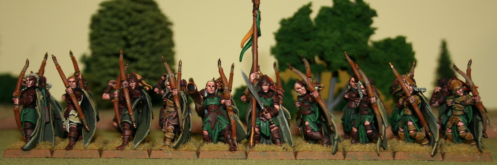 This is not a photoshopped image. This is the actual cover of the French version of the Warhammer Fantasy Wood Elves Codex. Among the projects I have been considering in the last few years, a Warhammer army was always high in my list of temptations, and among the WH armies I knew there was one with my name on it, literally. Warhammer was also among the many challenges that Curt seeded along our gaming sessions, and with the release of a new edition of the rulebook, I thought that all the ingredients were gathered for me to start a new insane project.This is what I have so far: 20 Glade Guards ("Gardes Sylvains" in French) and 12 Dryads. The two characters are proxy heroes that will be in command of the army until I get new ones painted. The right hand one died a glorious death in Curt's brutal Fantasy RPG campaign not long ago. The left-hand one is my new character for the next chapter of the campaign.
