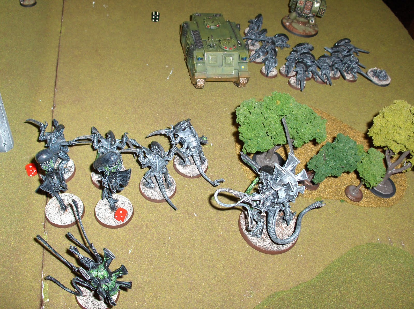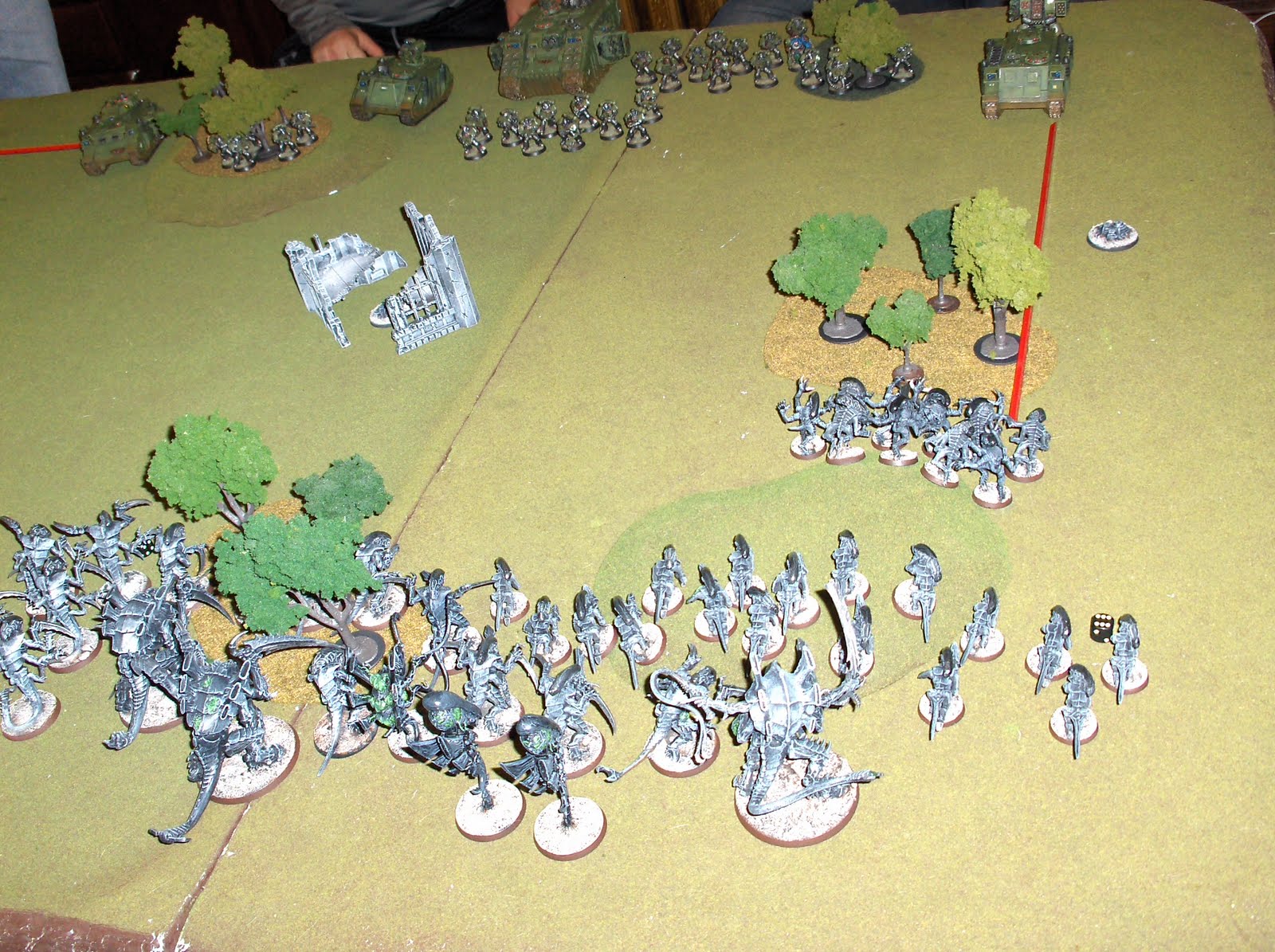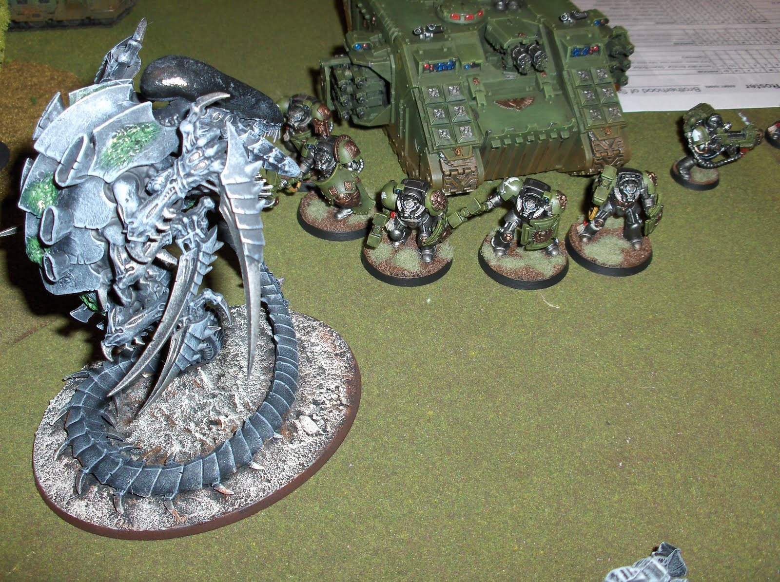 The Tyranid hive fleet Nostromo has been allowed to rampage across the galaxy once again thanks to the most recent Imperial effort. Local guard units had requested aid in mopping up operations after a hard fought but successful encounter. The Chapter that responded was inexperienced, only moderately successful on the battlefield and not up to the task at hand! After a bloody battle involving horrific casualties on both sides, the Tyranids controlled the majority of the pre-designated objective markers.