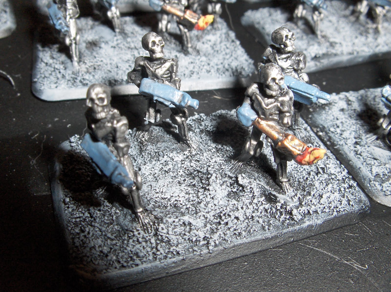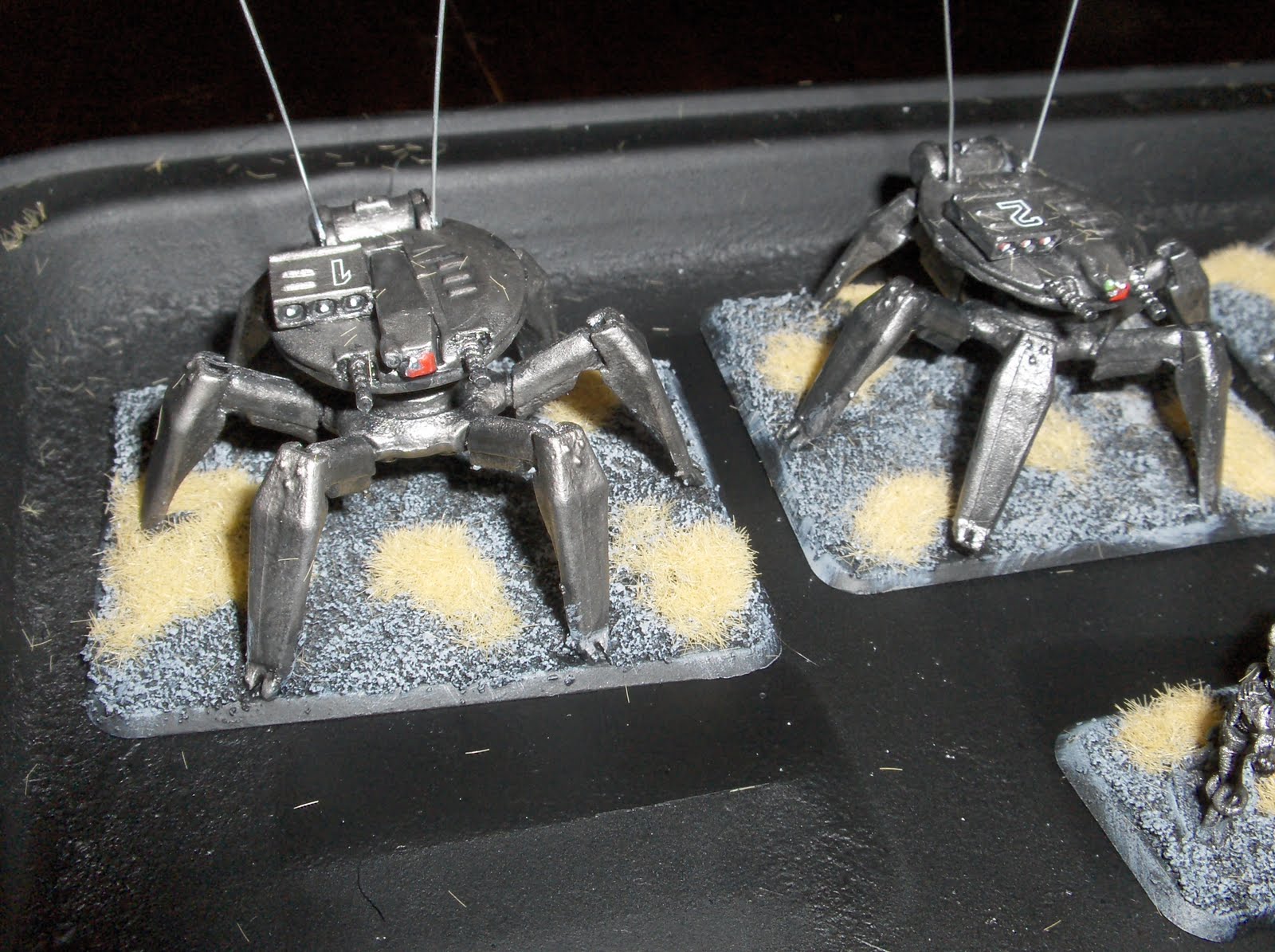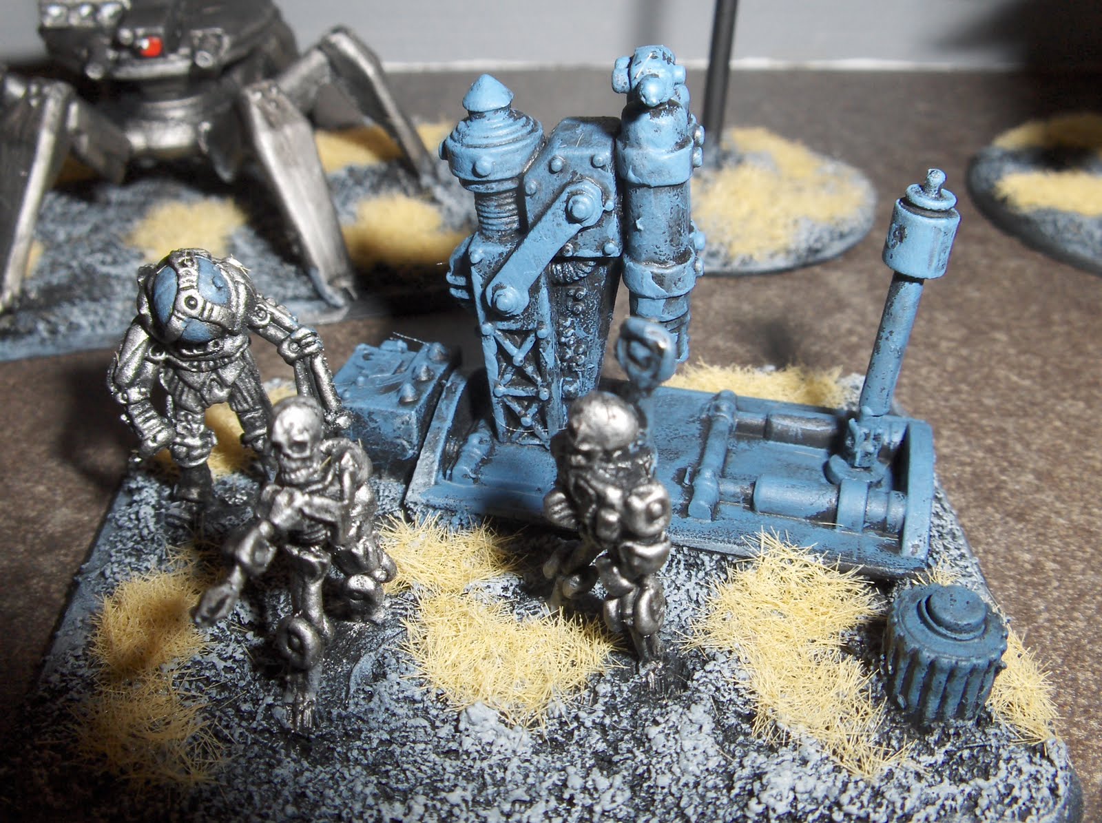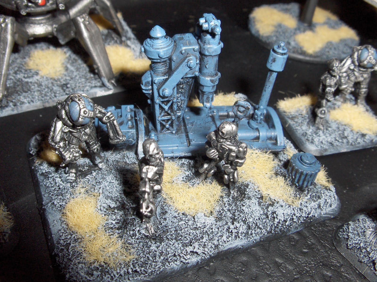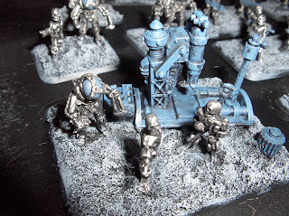 The models were drybrushed again with Mithril Silver. I used a couple of old Laserburn robots on the command stands, and added some junk from the bits box to fill the base and add some visual interest.