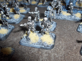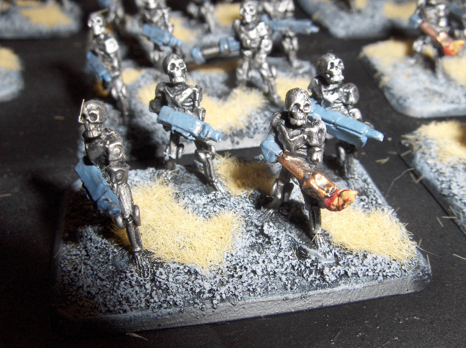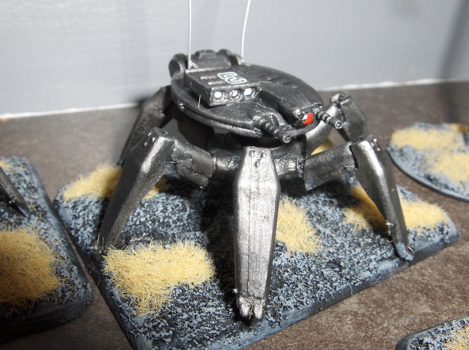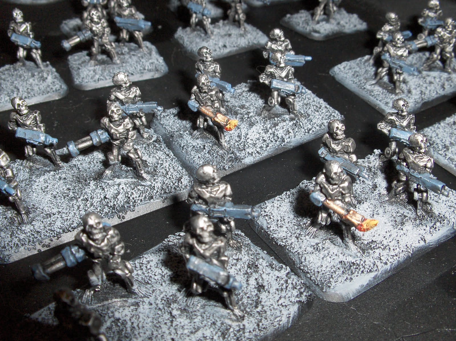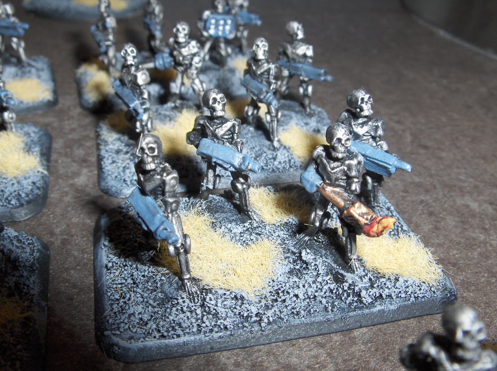 The models were drybrushed again with Mithril Silver. I used a couple of old Laserburn robots on the command stands, and added some junk from the bits box to fill the base and add some visual interest.