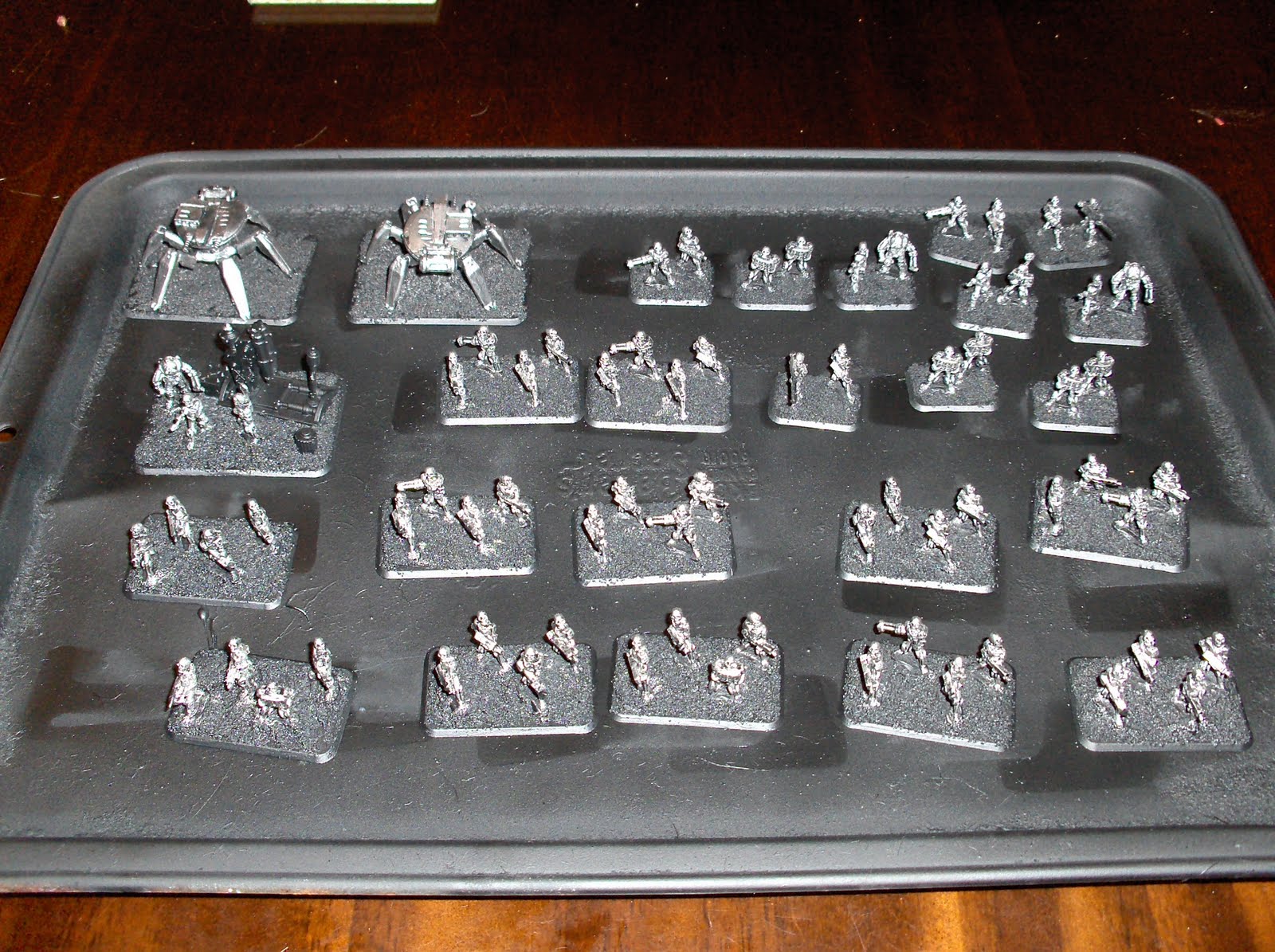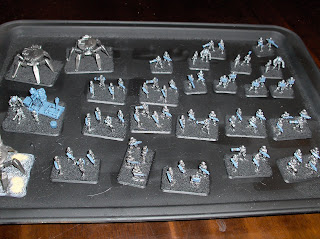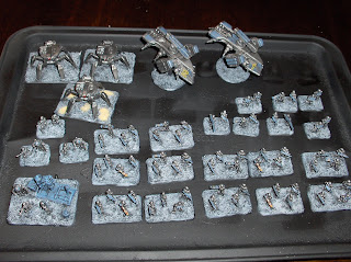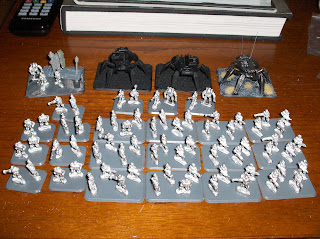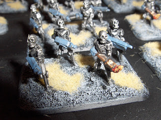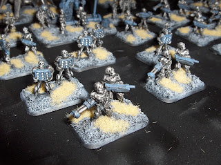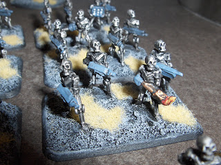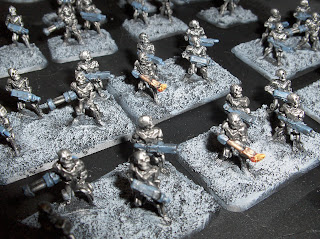 To supplement the "Federal Infantry", I am also painting some of Khurasan's awesome "Control Battalion" figures, to serve as heavy infantry. I have only finished four bases and a command base & support drone so far, but here are some pictures.