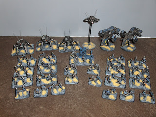 The remainder of the Eldar forces came on in a phalanx from the centre of the southern table edge.
