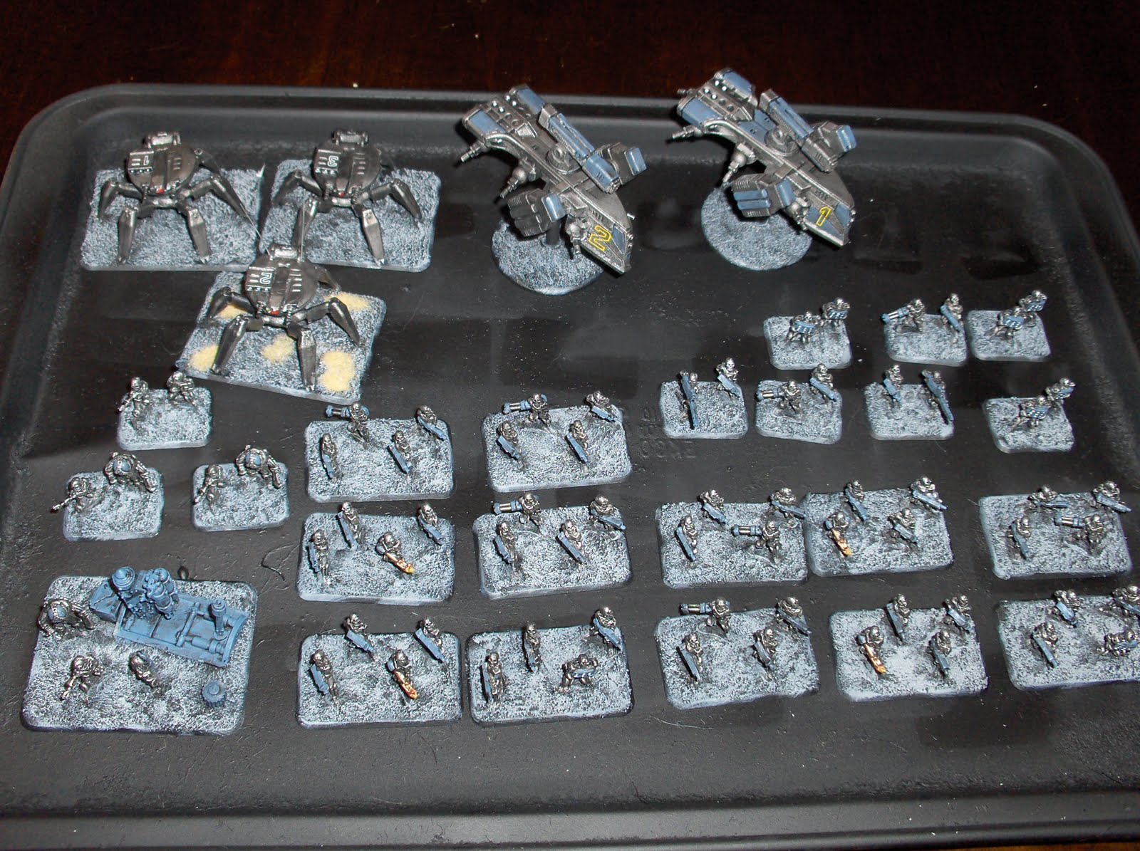 The photo above shows the autocannon armament close up. I figured each mobile platoon would have one alternate weapon of some sort to provide more varied fire support for the infantry.