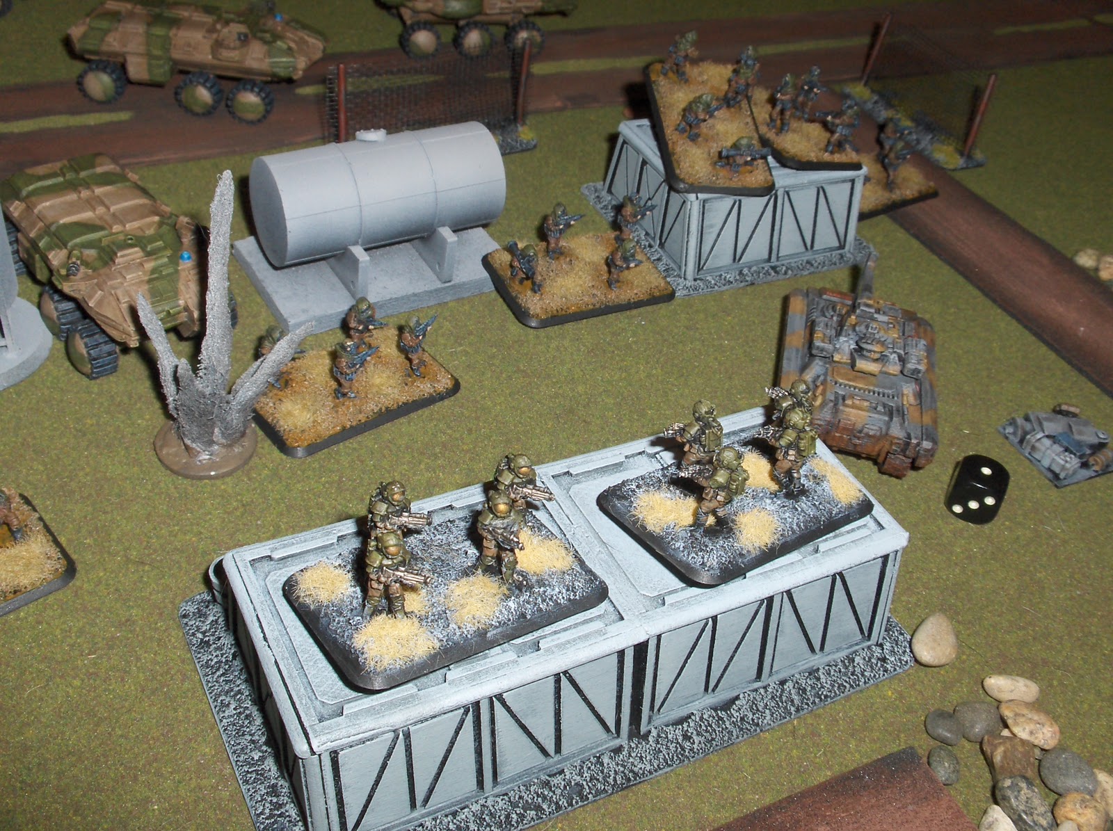 It's all the rage, and I'm fully infected. I am adding some heavy weapons and more vehicles to my Federal Army troops, and another platoon of Control Battalion infantry.