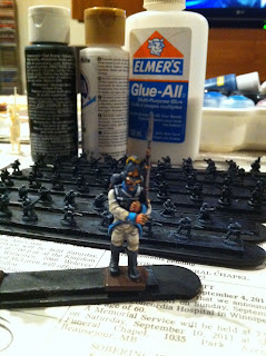 After a summer and early fall in which very, very little painting was accomplished, I am trying to get the motor running again. My painting style revolves a lot around momentum - if I paint one or two figures, I'll probalby do 20 or 30. Moving was very disruptive to this routine, as a number of things I had set aside "so I would not lose them" (decals, dullcote, glosscote, paint brushes) etc. disappeared during the move.