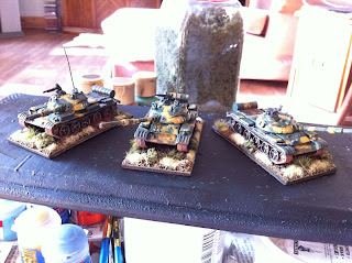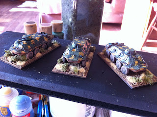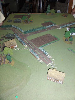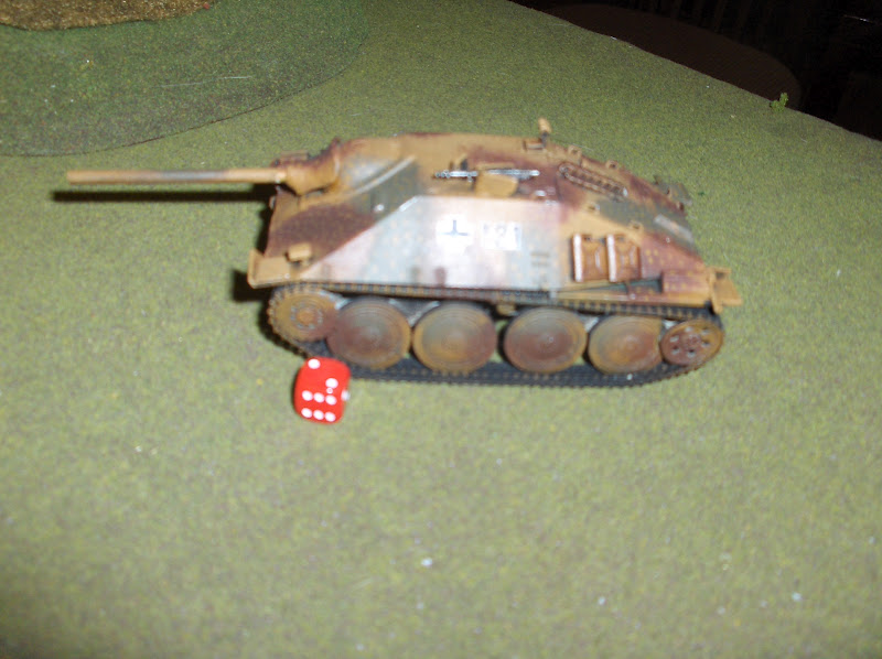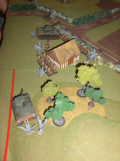 The game itself was not particularly bloody, probably mostly due to the fact that the attackers were well mechanized. Here's what made it off the table for the Germans, giving them a clear victory despite their handicap in armour - one Hetzer vs. the three Shermans. A clear example of how keeping sight of the victory conditions can make up for a seeming disparity in forces.