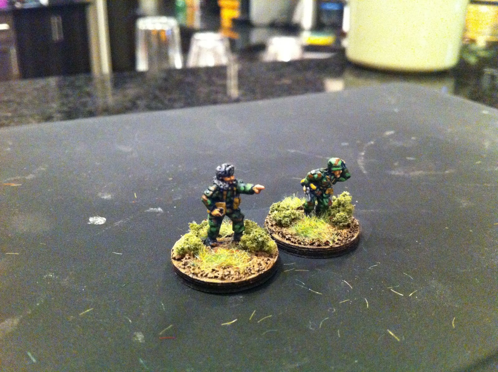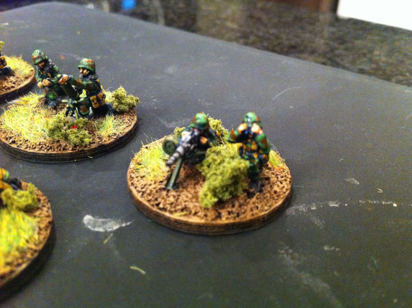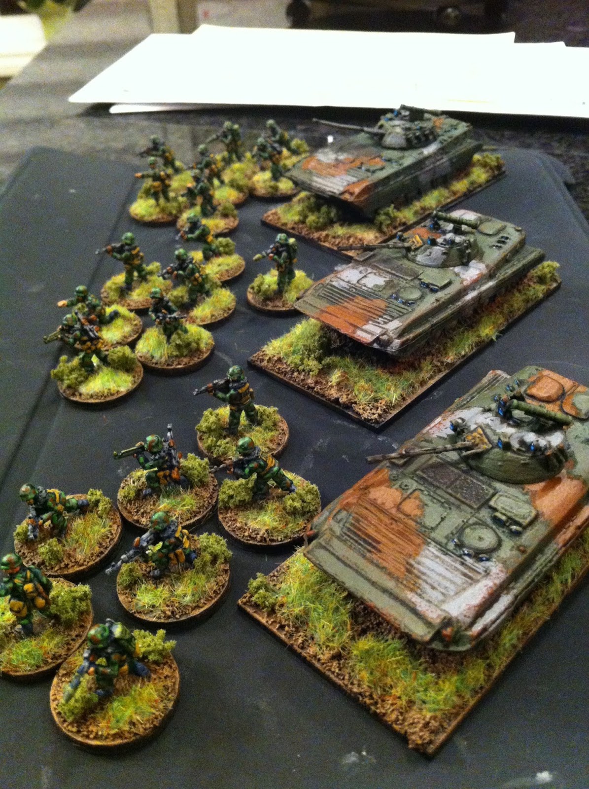 I painted the infantry in a sort-of-woodland camo that I have seen on