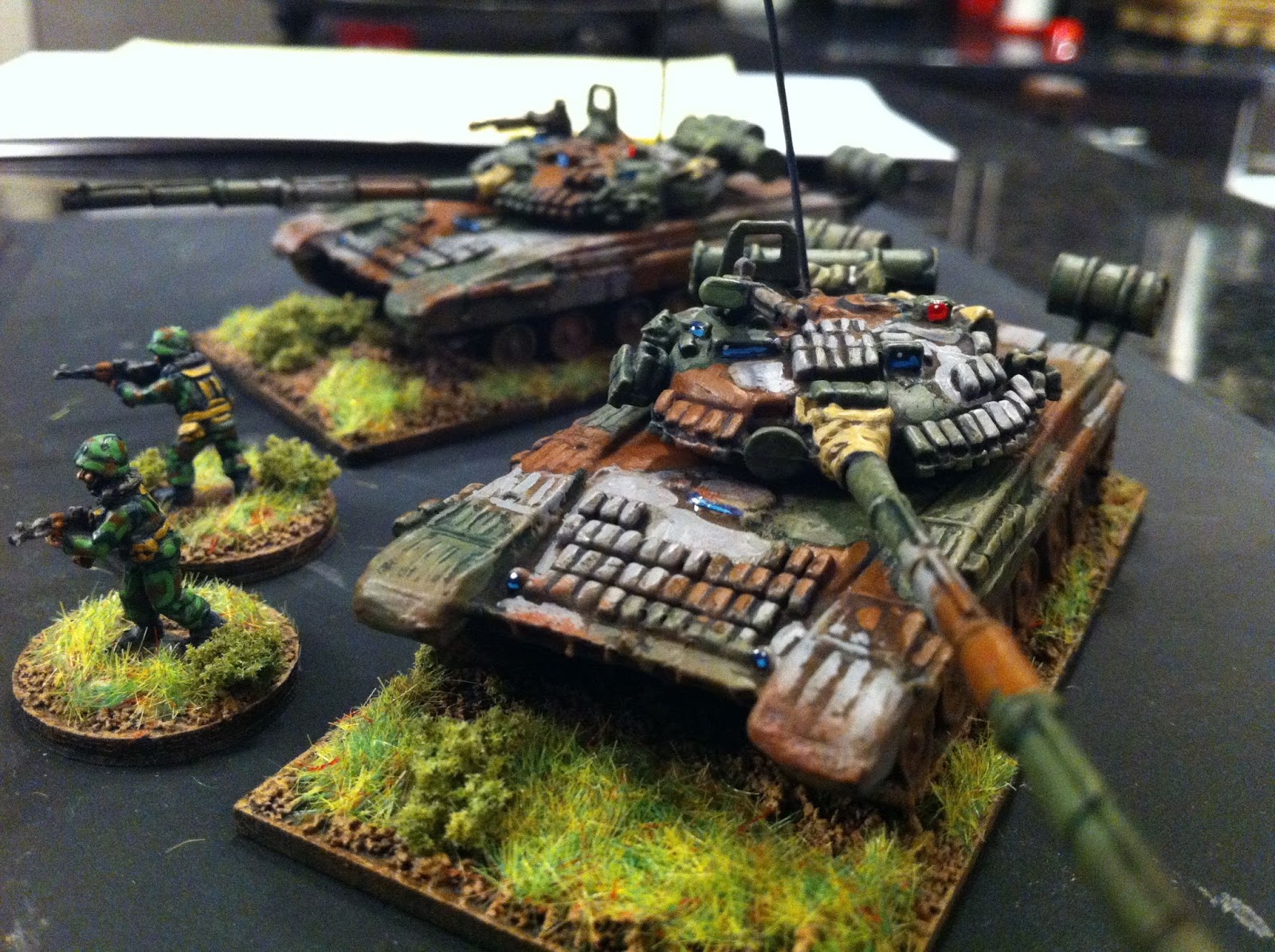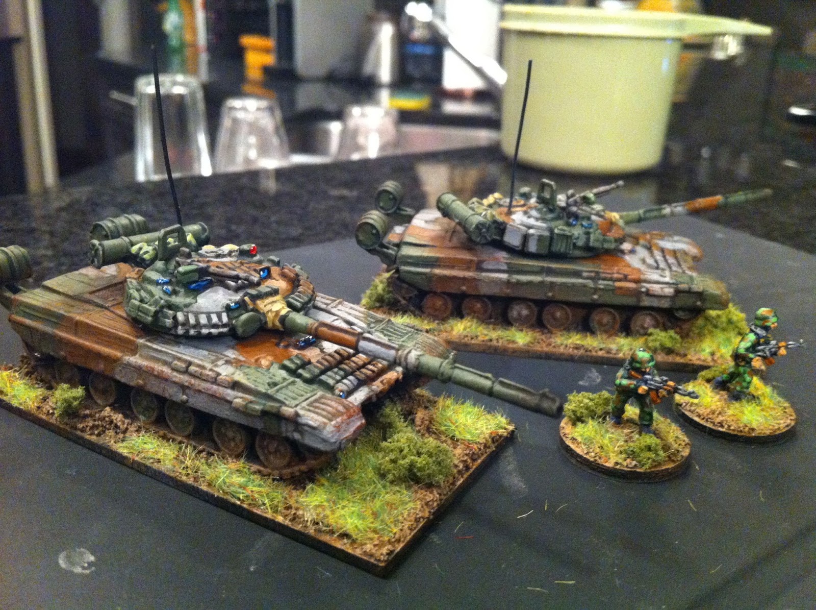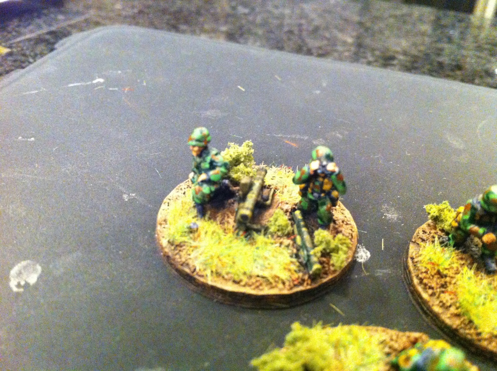 I painted the infantry in a sort-of-woodland camo that I have seen on