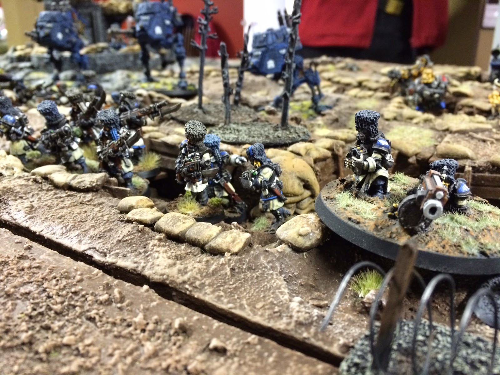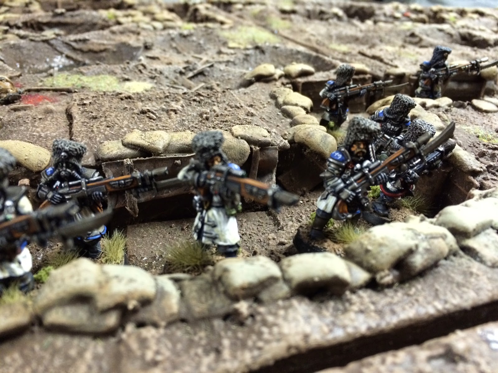Shifting a bit to the left, more Vostroyans and Sentinels with Crimson Fists in the support trench.
