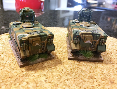 I know some pure historical games are cringing at that last statement, but tough.... I know that Dessert Storm had some different vehicles and that this is somewhat inaccurate, but many of the same vehicles were used, so for a game we can stretch it a bit. While I like historical battles, I am not caught up on exact recreation. I have no real need to worry about which version of which gun was at which battle, I really don't care. If the figs are well painted, and reasonable resemble something, then all I care about is the game itself. Is it fun and plays well, Awesome! I took that view for this so that we could do fun games based in the Team Yankee "world" and use their rules, but stretch it to other areas a bit.
