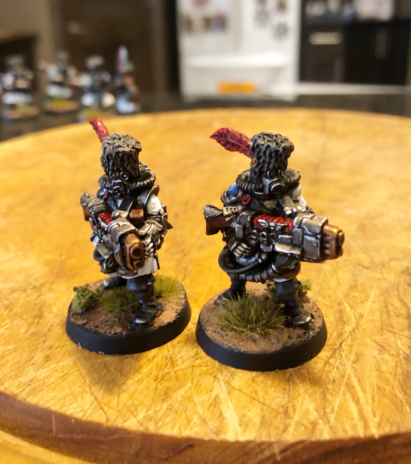 | Vostroyan Officer and Special Weapon troopers, metal 28mm figures from GW. |