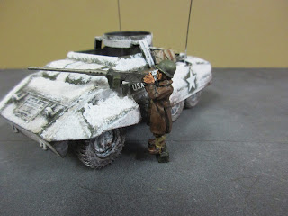 A couple of shots with the M4A1 Sherman to finish off the post. The winter camo is looking OK and I can't wait to get the Greyhound done - it's such a cool looking (and heavily armed) vehicle. I gotta give props to Company B for making the crew model. It's a really niche kind of thing to make, but adds so much to the LCF for our games.
