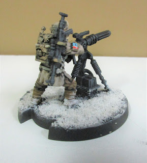 | Rear view of the officer and vox trooper - showing the segmented armour, and the handy chain swords. Because in the grim darkness of the far future, you need to saw stuff. |